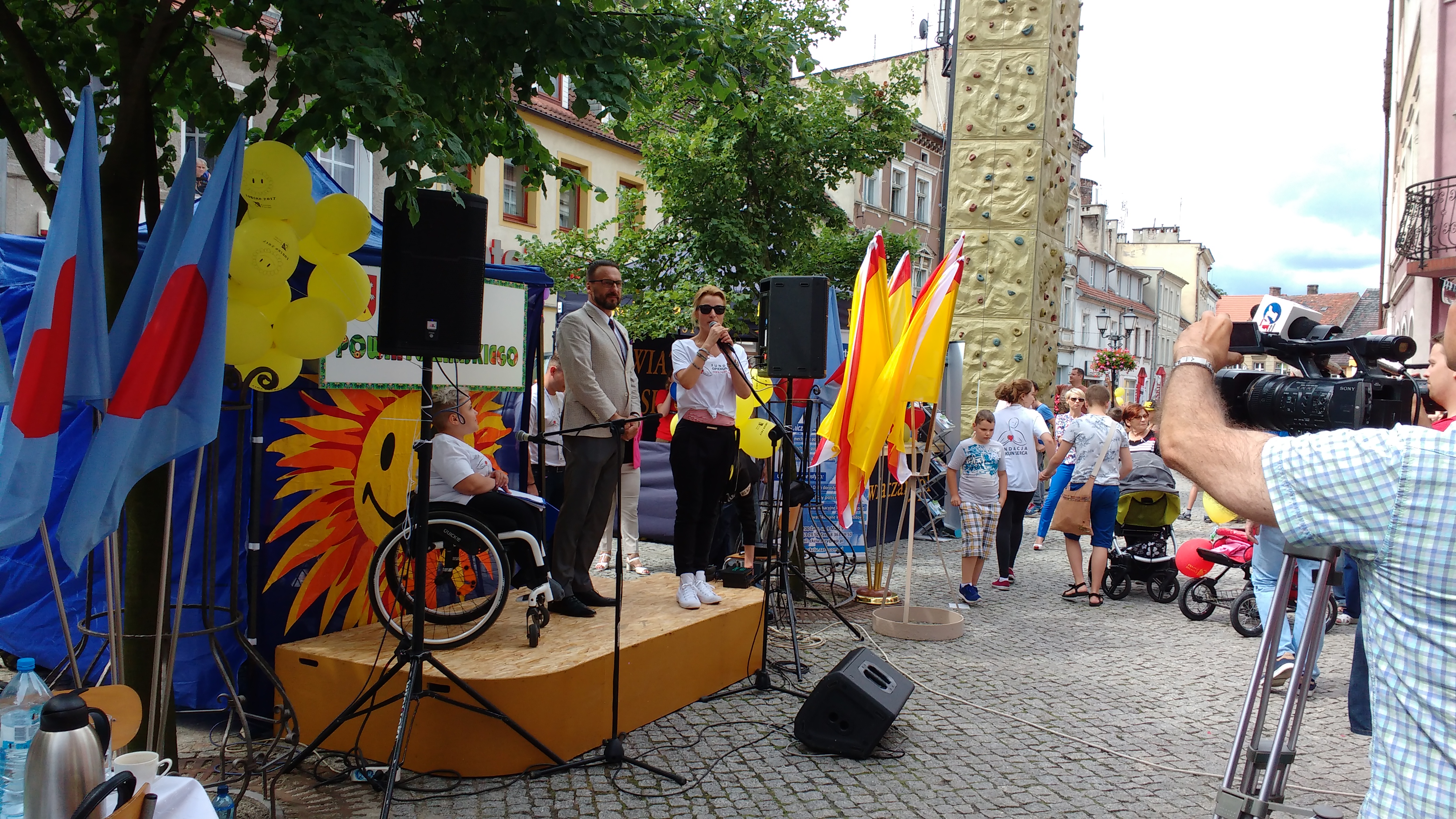 Gościem specjalnym Jarmarku była Pani Joanna Brodzik, która otworzyła spotkanie i podziękowała przedstawicielom ponad kilkudziesięciu instytucji, w tym również przedstawicielom PFRON za przyjazd do Lubska i za niesienie pomocy osobom z niepełnosprawnościami.