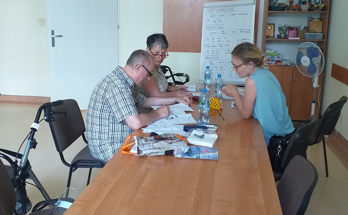 W różnym wieku, niezależnie od grupy społecznej i niepełnosprawności można uczyć się języka obcego. Nic ani nikt nie stoi na przeszkodzie, wystarczą tylko dobre chęci i motywacja do działania. Ważne jest, żeby przełamać swój strach, lęk, obawy i wstyd. Zajęcia pokazują, że każdy człowiek niezależnie od niepełnosprawności może uczyć się języka obcego. Ciekawostką jest nauka mówienia o swoich potrzebach, problemach, obawach w języku angielskim z czego rodzi się dyskusja między uczestnikami i tworzy się więź gdyż każdy z nich ma podobne problemy dotyczące stanu zdrowia. Język angielski będzie prowadzony do końca marca 2021r. jeżeli sytuacja COVID – 19 nie ulegnie zmianie.