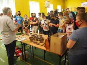 Stereotypowa archeologia kojarzy się dzieciom z Egiptem, zamkami i Indiana Jonsem. Znany archeolog z Wrocławia, celtolog, badacz wielu stanowisk na Śląsku dr Marek Bednarek przywiózł ze sobą i wystawił na stole „dziwne”, stare przedmioty, z których dzieci potrafiły rozpoznać jedynie całe „garnki”. Ale były też ”kamienie”. Archeolog zabrał dzieci w daleką podróż w przeszłość, do czasów kiedy rozwój kultury praludzi zaczął się od wykorzystania przedmiotów wykonanych z kamienia: pięściaków, siekierek i toporków. Celem warsztatów było pokazanie dzieciom czym jest archeologia i czym się zajmuje archeolog oraz pokazanie, że archeologia to nie tylko nauka, specjalistyczna wiedza, zespół działań i metod badawczych. Archeologia to również edukacja, popularyzacja i pasja życiowa. To także forma praktyki społecznej i kulturowej, która łamie bariery, pobudza wyobraźnię i inspiruje. które – bazując na edukacji interaktywnej – pozwoliły dzieciom przyswoić nowe i skomplikowane wiadomości w atrakcyjny sposób. Szczególnym ich walorem było to, że można było dotykać zabytków archeologicznych i pytać archeologa o wszystko.