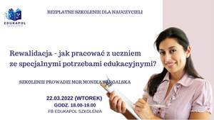 W najbliższy wtorek, tj. 22.03.2022 roku w godzinach 18:00-19:00 Edukapol Szkolenia organizuje bezpłatne webinarium zatytułowane „Rewalidacja – jak pracować z uczniem ze specjalnymi potrzebami edukacyjnymi”.