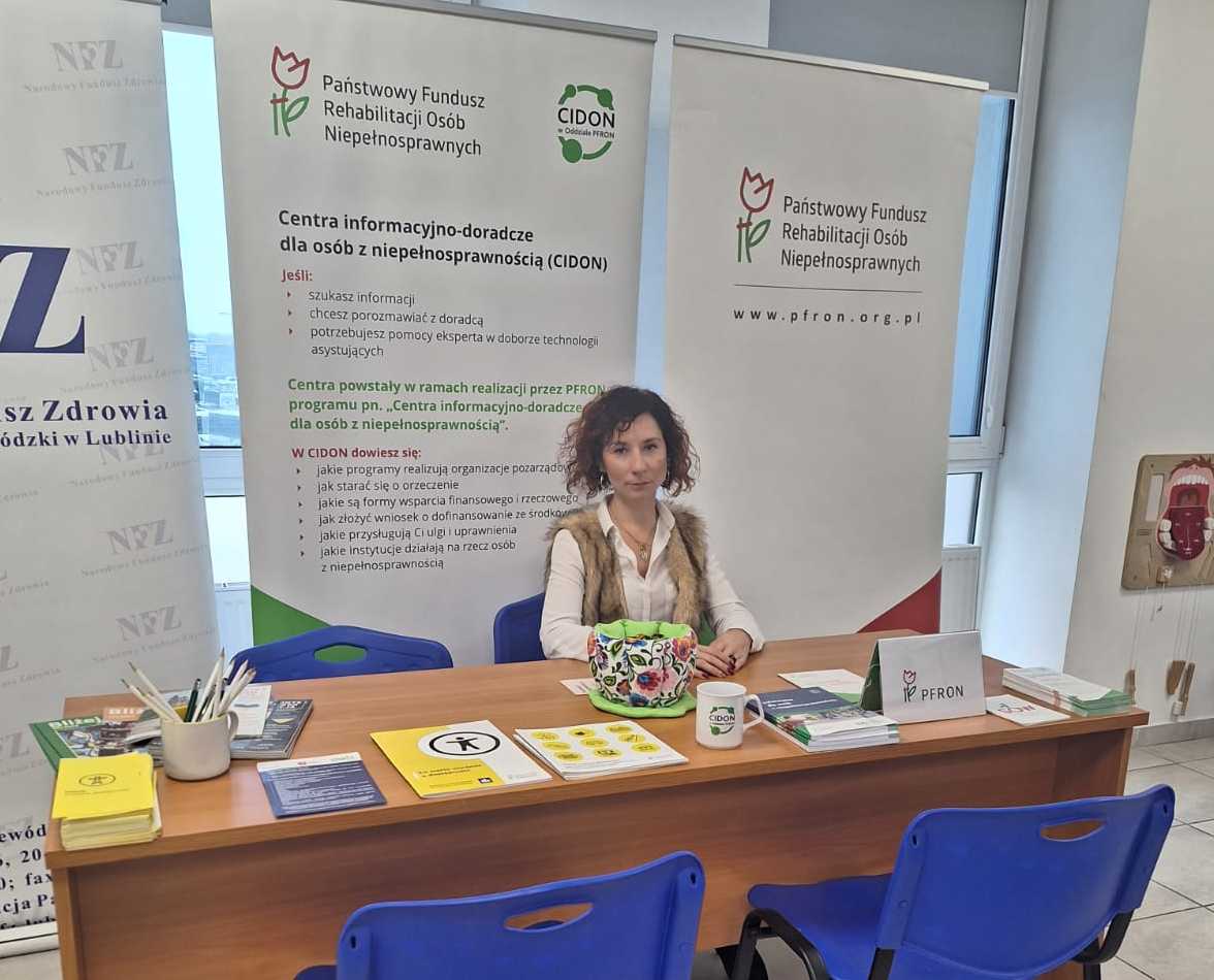 Pracownicy Oddziału Lubelskiego PFRON udzielali informacji na temat programów realizowanych przez PFRON, obowiązujących systemach orzecznictwa, możliwościach uzyskania wsparcia finansowego i rzeczowego. Na stoisku dostępne były materiały informacyjne CIDON, czasopisma, ulotki na temat dostępności, materiały promocyjne oraz Informator dla osób z niepełnosprawnością wydany razem z Zakładem Ubezpieczeń Społecznych.
