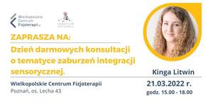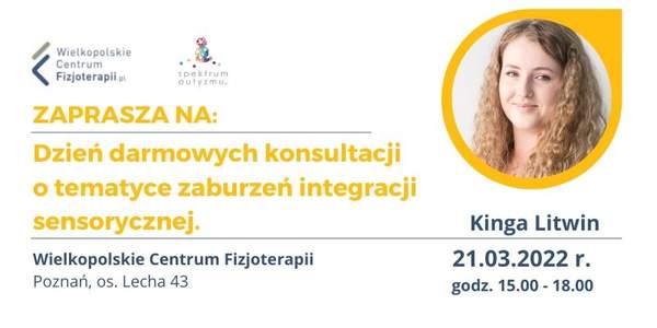 W najbliższy poniedziałek, 21 marca 2022 roku w godzinach od 15:00 do 18:00 Wielkopolskie Centrum Fizjoterapii organizuje bezpłatne konsultacje z zakresu zaburzeń integracji sensorycznej.