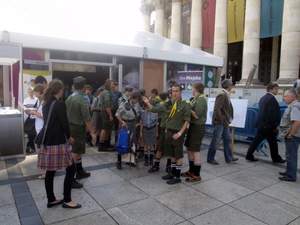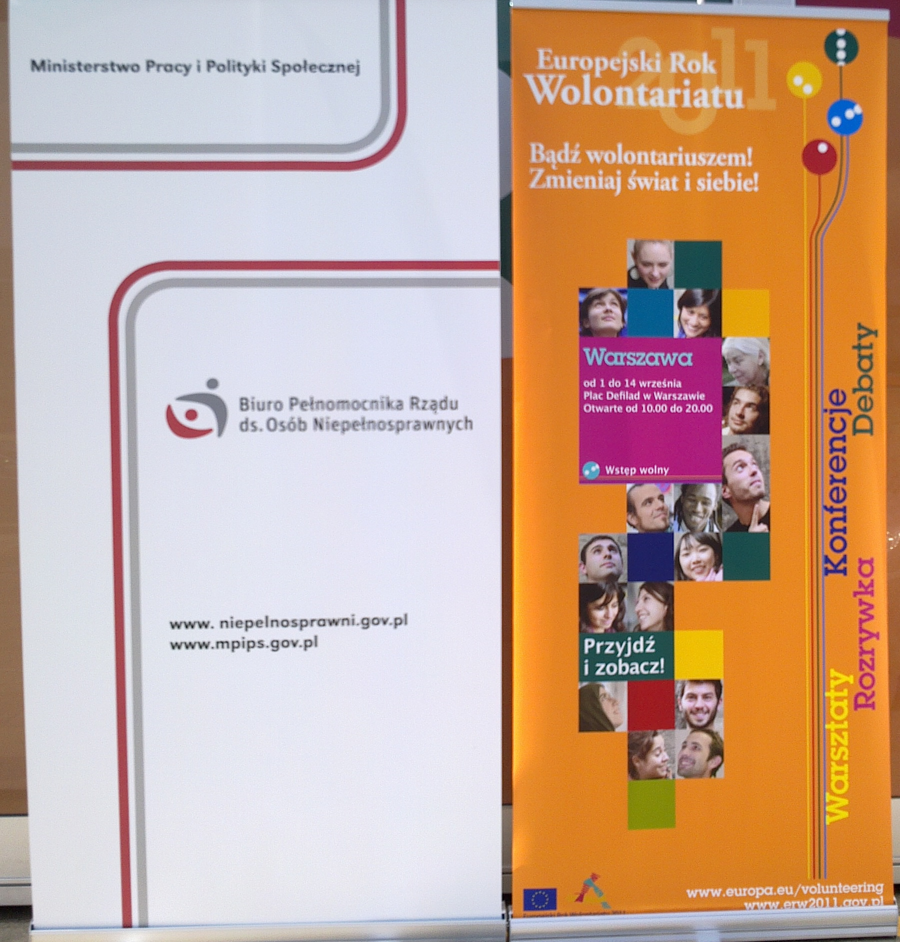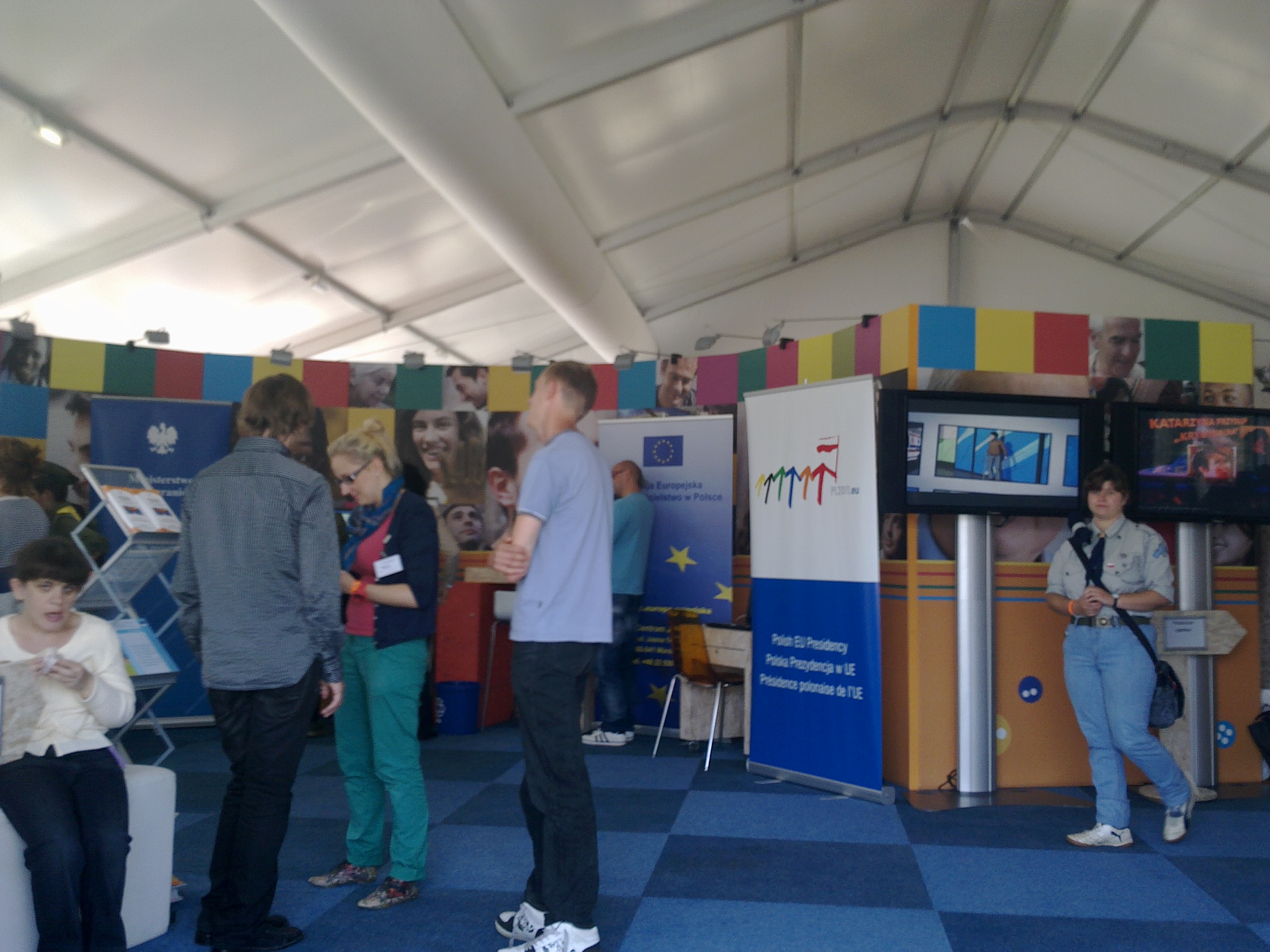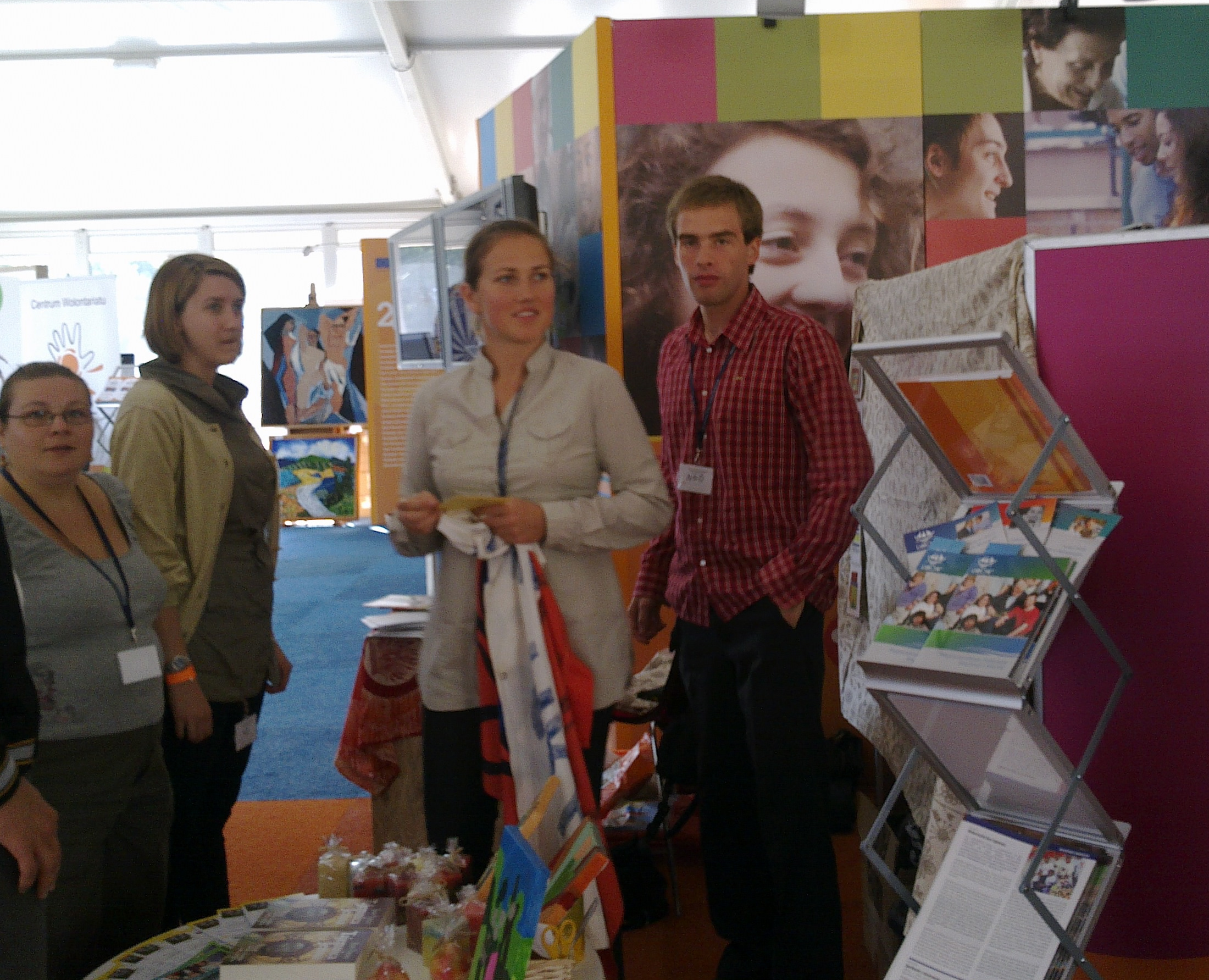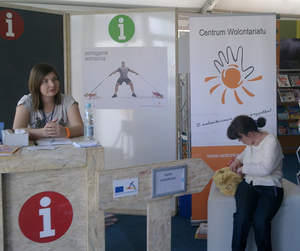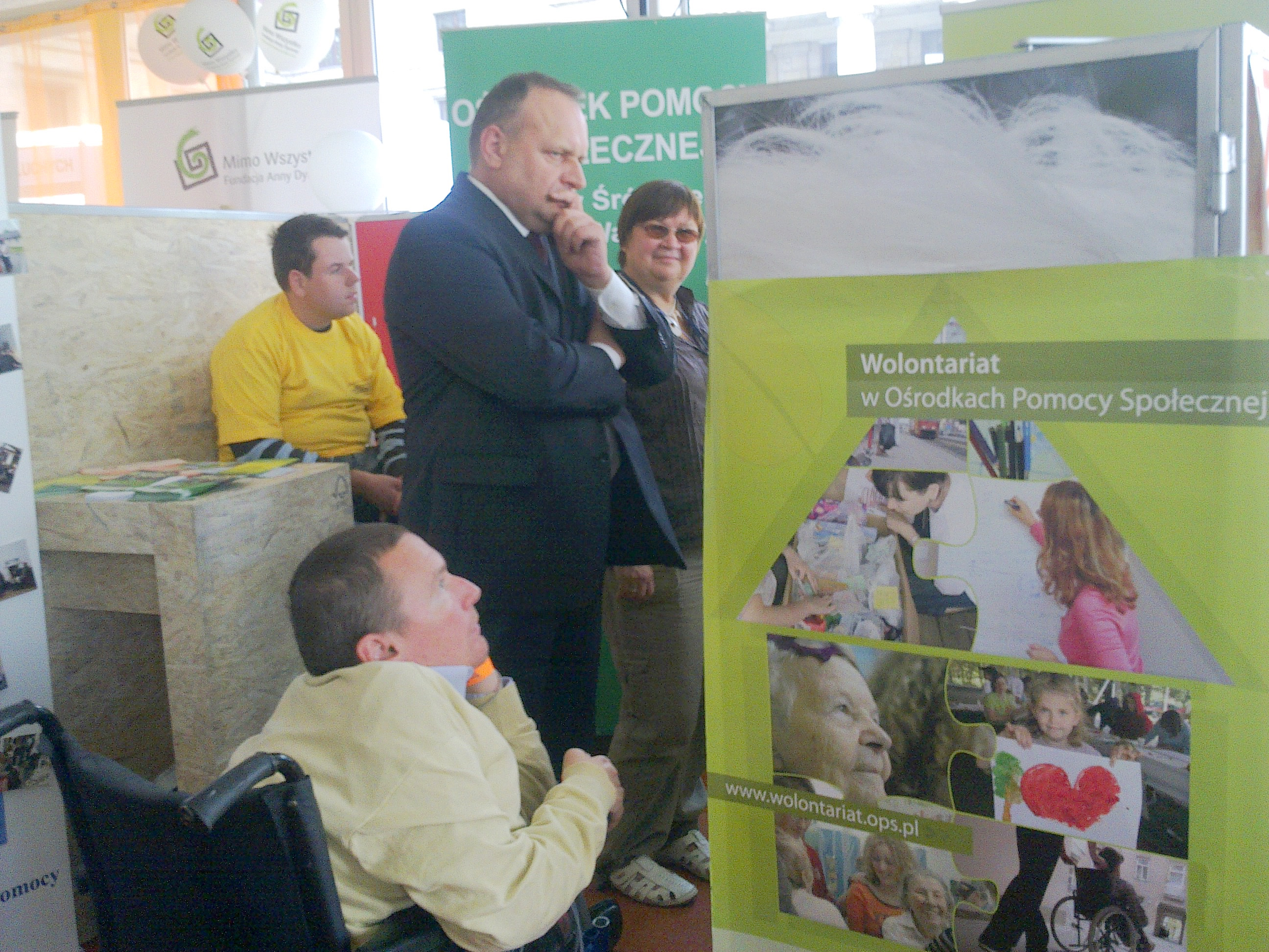 Wg CBOS - 20 % dorosłych Polaków w 2010 r. angażowało się w działalność wolontariacką, wg badań Klon-Jawor - 16 % obywateli polskich poświęcało czas na pracę w NGO. Jak wynika z badań wspólnych CBOS-MPiPS i ISP - 8% społeczeństwa polskiego angażowało się w konkretną działalność społeczną. Pojęcie wolontariatu nie jest dobrze rozpoznawalne i niejednoznaczne stąd rozbieżności w wynikach różnych badań. Dla porównania - w Unii Europejskiej pracuje ok. 90 mln wolontariuszy, czyli 23% dorosłych obywateli. Wolontariat jest cenny nie tylko z pobudek czysto humanistycznych – w różnych krajach członkowskich UE, praca wolontariuszy stanowi od 0,5 do 5% PKB. W pierwszym dniu ERW - goście Pawilonu mogli wymienić poglądy z wolontariuszami pracującymi w organizacjach pozarządowych oraz współpracującymi z instytucjami m.in. ośrodkami pomocy społecznej. Niespotykaną w Polsce formę działalności na rzecz pomocy osobom z niepełnosprawnością intelektualną zaprezentowała wrocławska wspólnota Międzynarodowej Federacji Wspólnot L’ARCHE (więcej www.larche.org.pl ). Trenerzy z Fundacji Pies Przewodnik opowiedzieli o metodach szkolenia psów przewodników, a osoby z niepełnosprawnością narządu wzroku, które przybyły ze swoimi psami, podzieliły się swoimi doświadczeniami w korzystaniu na co dzień z pomocy wyszkolonych zwierzaków (więcej: www.fundacjavismaior.com ). Przybyła liczna ekipa harcerzy Nieprzetartego Szlaku ze szczepów z różnych stron Polski. Punkty informacyjne PSOUU, Stowarzyszenia Otwarte drzwi, czy Miasta st. Warszawy prezentowały wiele ważnych informatorów i internetowych platform informacyjnych (np.: www.niepelnosprawnik.pl - zawierający informacje o dostępności przestrzeni publicznej dla osób z różnymi niepełnosprawnościami). Bogatą kolekcję prac plastycznych zaprezentowanych w Pawilonie wykonali artyści niepełnosprawni z Warsztatu terapii zajęciowej z Instytutu Psychiatrii i Neurologii w Warszawie. W Pawilonie odbyły się spotkania z wolontariuszami i przedstawicielami organizacji pozarządowych: