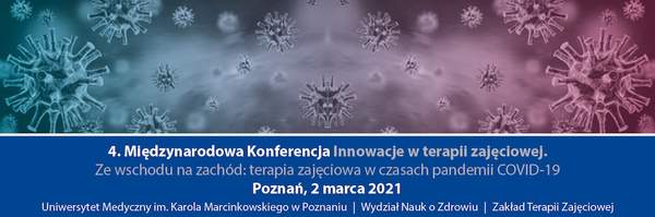 Terapia zajęciowa odgrywa ważną rolę w rehabilitacji osób z niepełnosprawnością. W odpowiedzi na duże zainteresowanie tą tematyką 2 marca 2021 roku zorganizowana zostanie IV Międzynarodowa Konferencja „Innowacje w terapii zajęciowej”. Spotkaniu towarzyszyć będzie hasło przewodnie: „Ze wschodu na zachód: terapia zajęciowa w czasach pandemii COVID-19”. Organizatorem wydarzenia jest Zakład Terapii Zajęciowej Uniwersytetu Medycznego im. Karola Marcinkowskiego w Poznaniu.