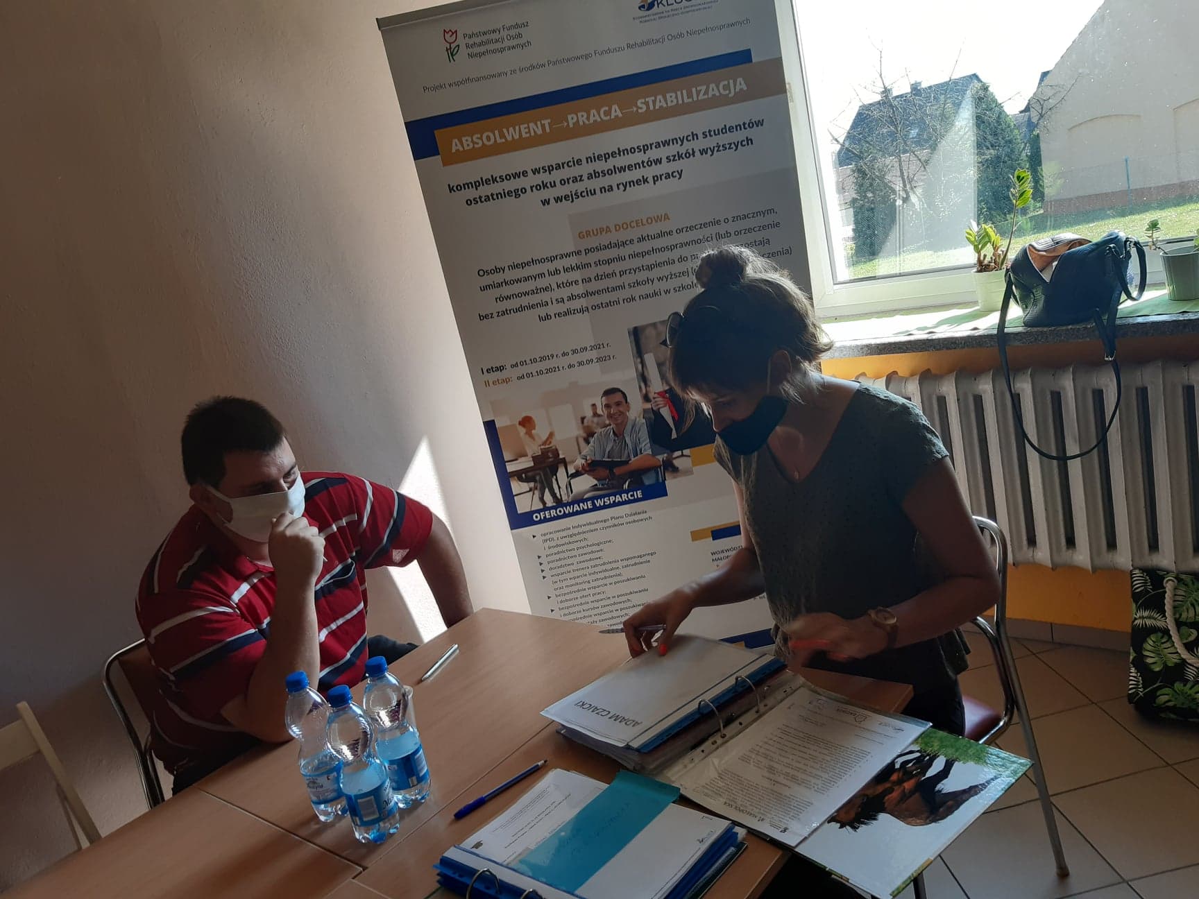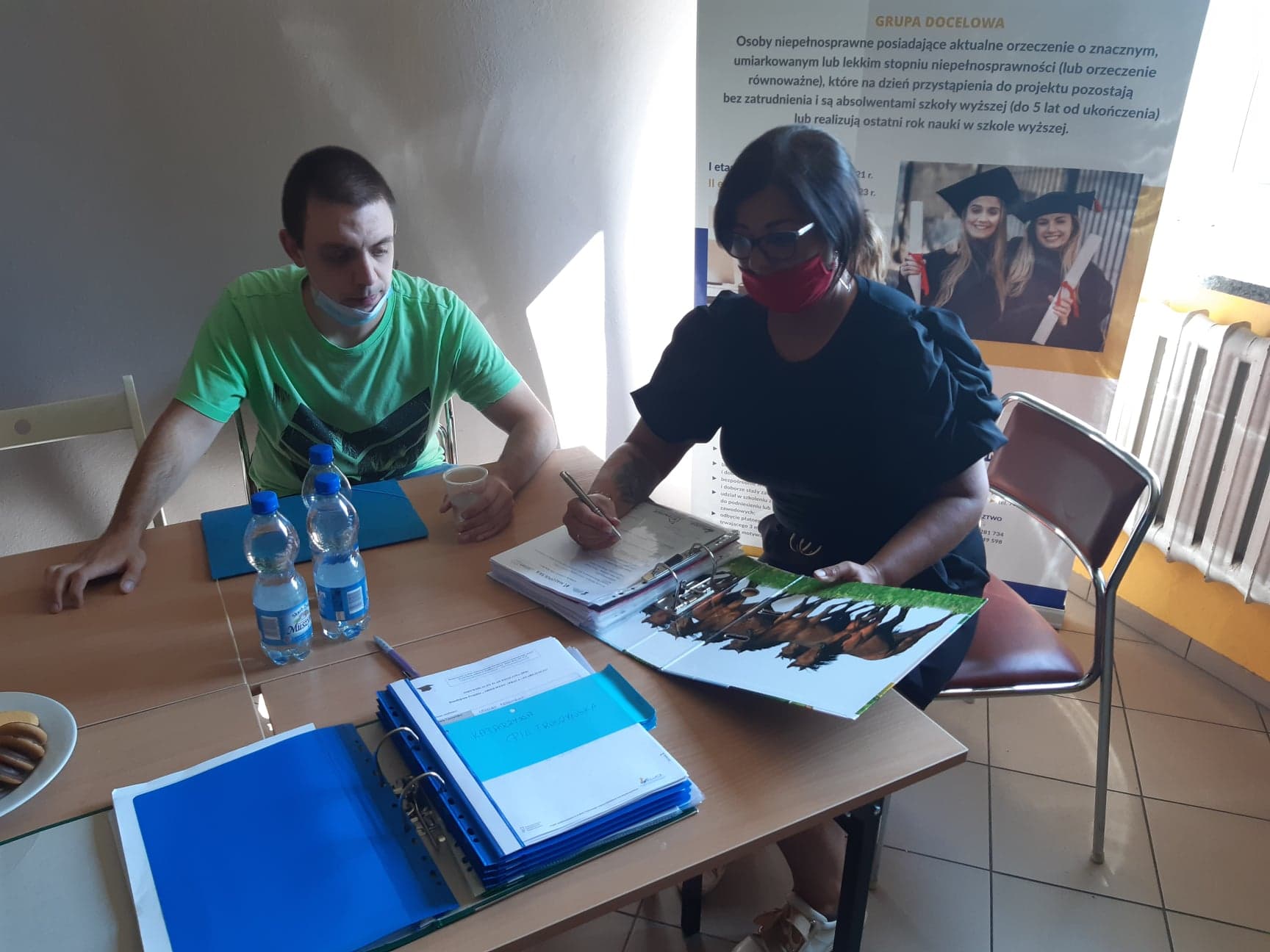 Pomimo niełatwej sytuacji epidemicznej projekt realizowany jest zgodnie z planem. Otrzymaliśmy od Stowarzyszenia kolejna porcje zdjęć i możemy podejrzeć uczestników Projektu – Absolwentów z niepełnosprawnością, którzy realizują swoją szansę na uzupełnienie lub podniesienie kwalifikacji i zdobycie doświadczenia zawodowego. Na zdjęciach uwieczniono spotkania z trenerami pracy, doradcą zawodowym oraz psychologiem. Wsparcie prowadzone jest częściowo zdalnie, ale i w biurach, przy zachowaniu odpowiednich zasad bezpieczeństwa.