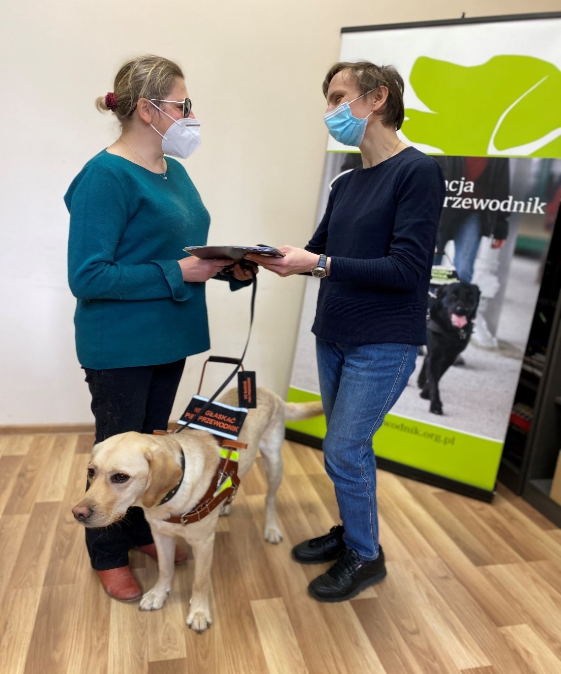 Kolejne przekazania dwóch psów przewodników w ramach projektu „Budowa kompleksowego systemu szkolenia i udostępniania osobom niewidomym psów przewodników oraz zasad jego finansowania”.