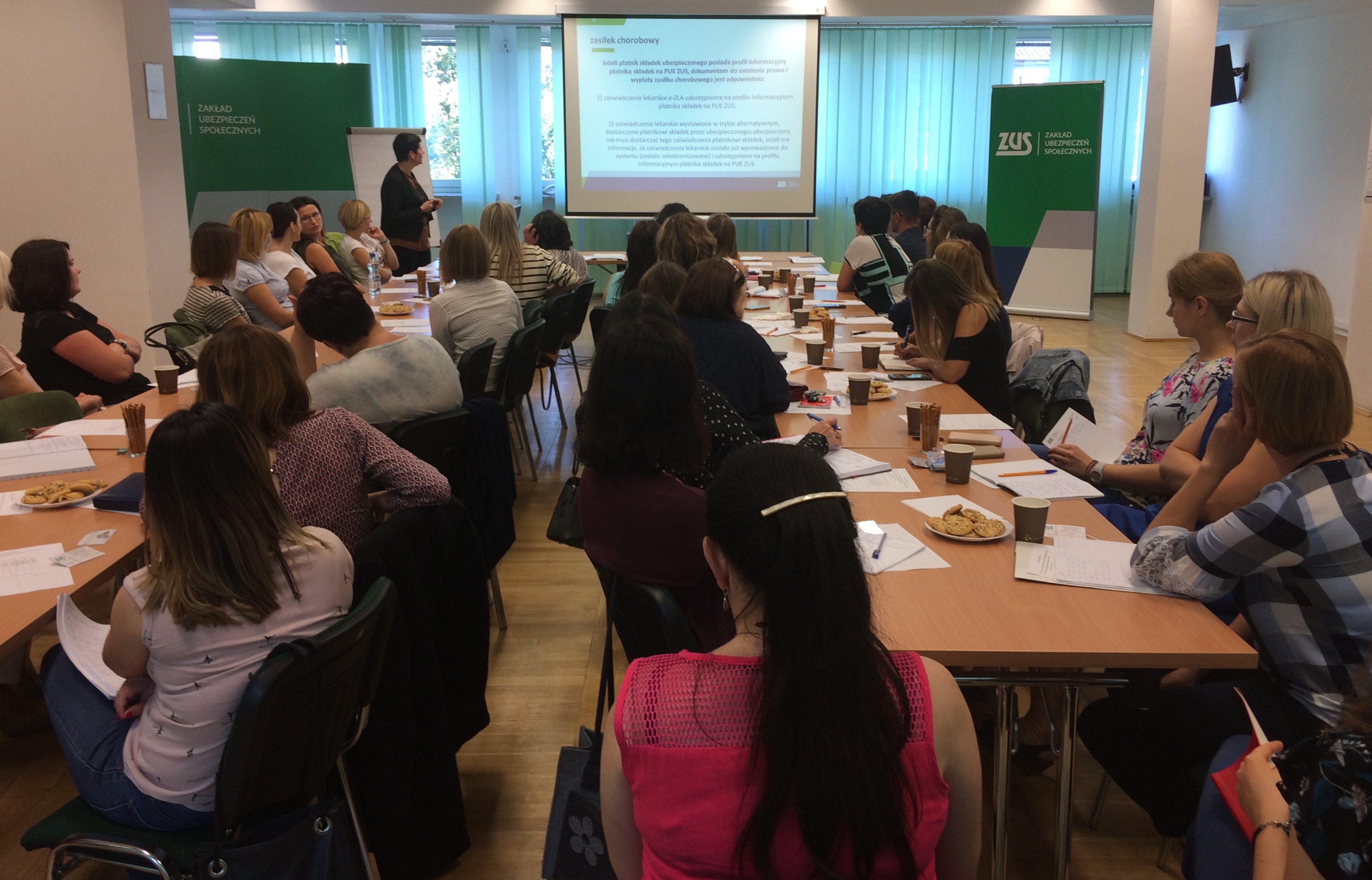 W szkoleniu, którego tematem było „Ustalanie uprawnień i podstaw wymiaru świadczeń krótkoterminowych” udział wzięli liczni przedstawiciele podmiotów-płatników ZUS oraz biur rachunkowych. Podczas tego wydarzenia oprócz prezentacji zorganizowane zostało stoisko informacyjne PFRON, na którym udzielano informacji dotyczących form wsparcia dla przedsiębiorców.