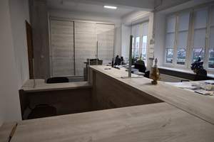 Dzięki dofinansowaniu ze środków PFRON w kwocie 39 tysięcy zł w ramach programu Stabilne Zatrudnienie przeprowadzono również prace remontowe w budynku starostwa powiatowego. Z trzech ciasnych biur, stworzono nowoczesną, otwartą przestrzeń do obsługi klienta dostosowaną specjalnie dla pracowników urzędu jak również interesariuszy. Przyznane środki zostały przeznaczone również na remont a w konsekwencji udostępnienie pierwszego piętra urzędu dla wszystkich mieszkańców powiatu.