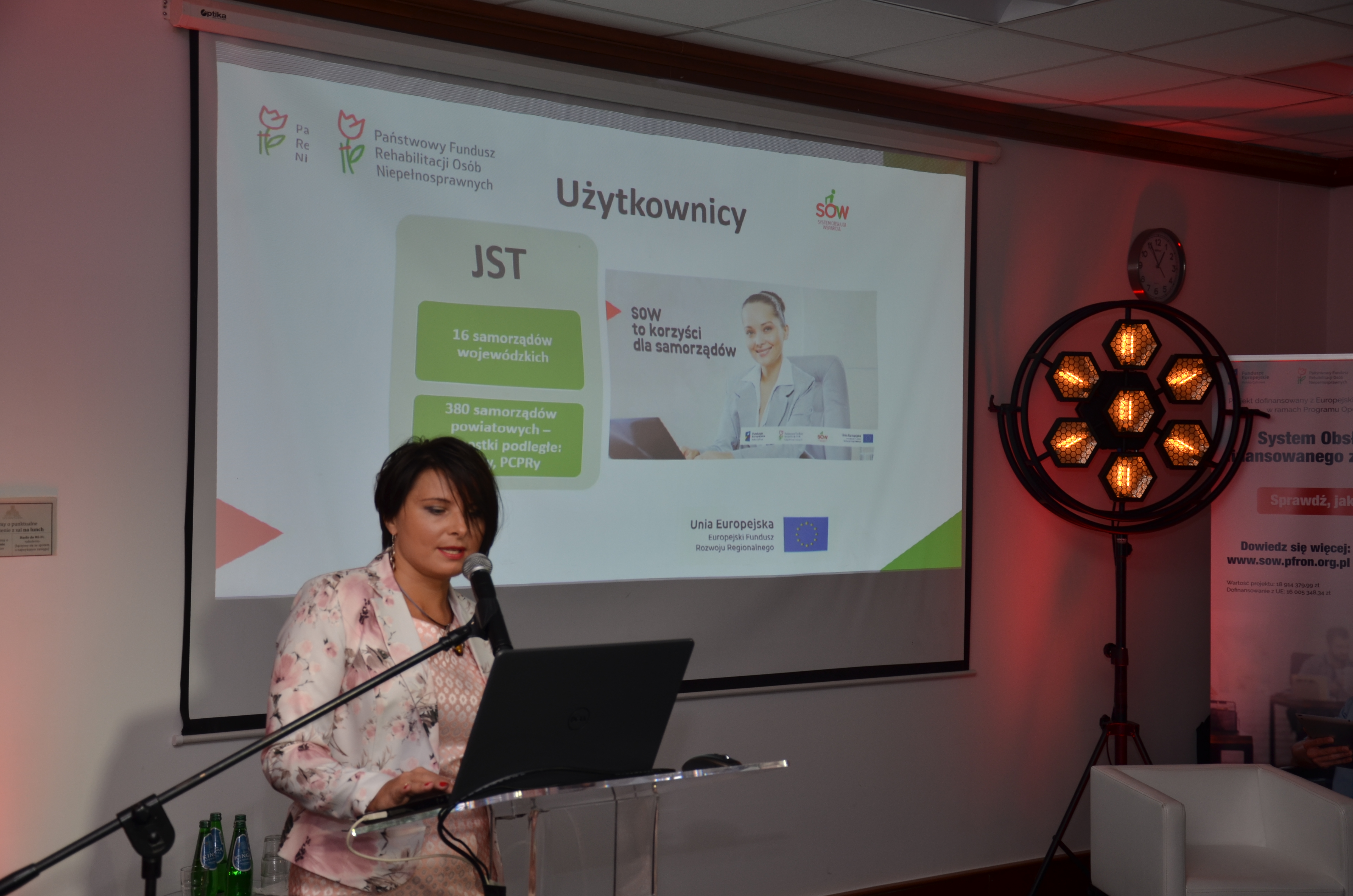 O działaniach wspierających Użytkowników Systemu mówiła Pani Kamila Kazimierczuk. Zaprezentowała kreator – narzędzie przedstawiające dostępne formy pomocy oraz prowadzące do właściwego wniosku w Systemie SOW i pokazała, jak korzystać z informatora i portalu edukacyjno-informacyjnego portal-sow.pfron.org.pl.