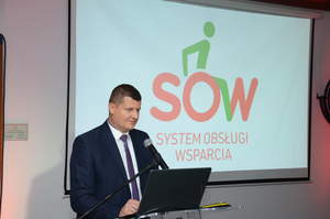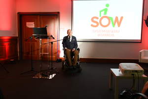 Następnie Dyrektor Biura Pełnomocnika Rządu ds. Osób Niepełnosprawnych, Pan Michał Pelczarski, wykazał, że System SOW wpisuje się w pozostałe, ogólnopolskie inicjatywy związane z wsparciem dla osób z niepełnosprawnościami i strategię na rzecz osób z niepełnosprawnościami.