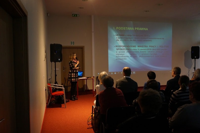 Dyrektor Oddziału Śląskiego PFRON Jan Wroński nakreślił nowy kierunek działań Funduszu, przedstawił oferowane formy pomocy, a także zachęcił do współpracy w tworzeniu przestrzeni przyjaznej osobom niepełnosprawnym na podstawie zgłaszanych uwag i propozycji. Następnie została przedstawiona prezentacja pt. „Dofinansowanie do szkoleń języka migowego ze środków PFRON”.