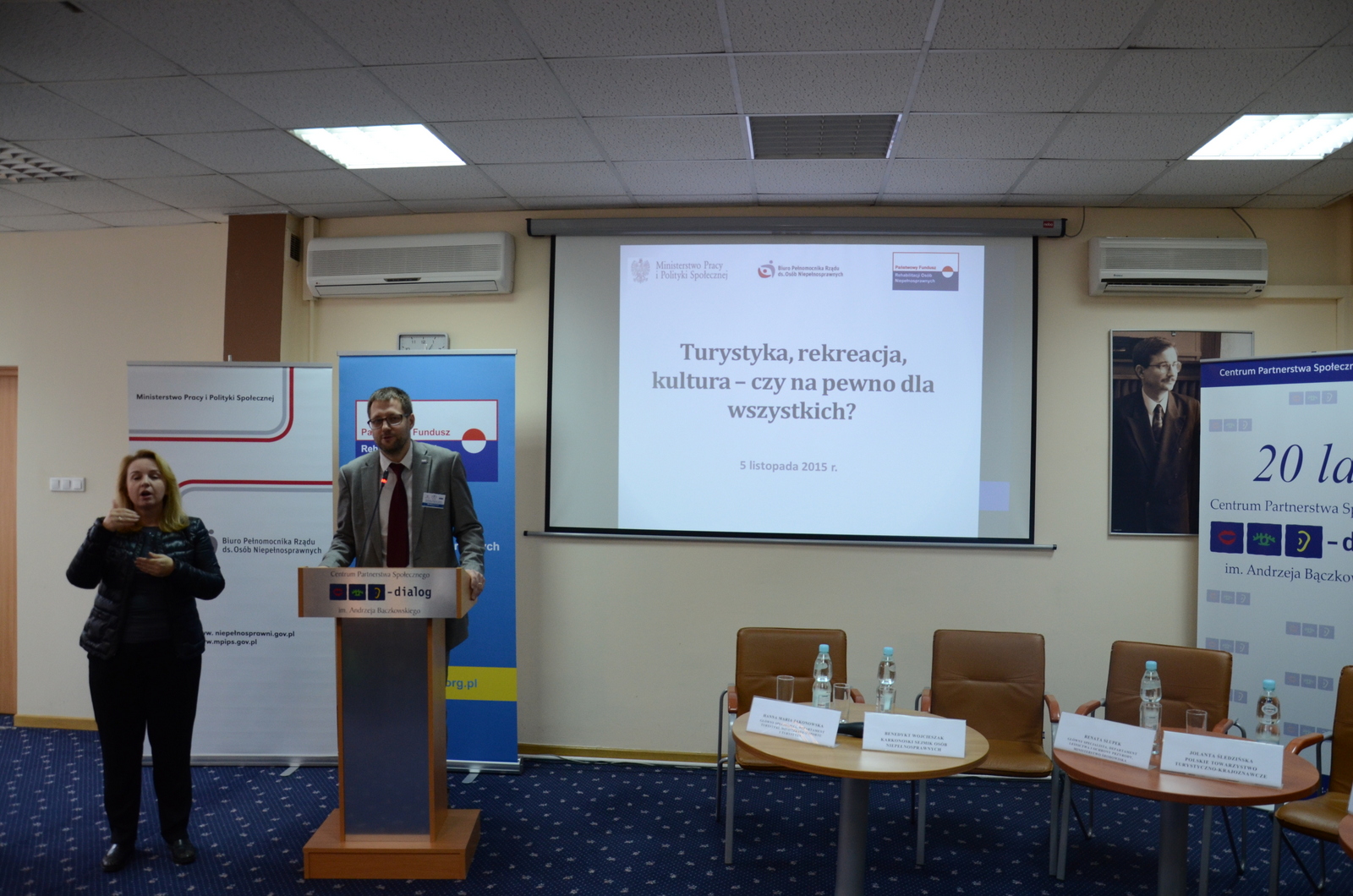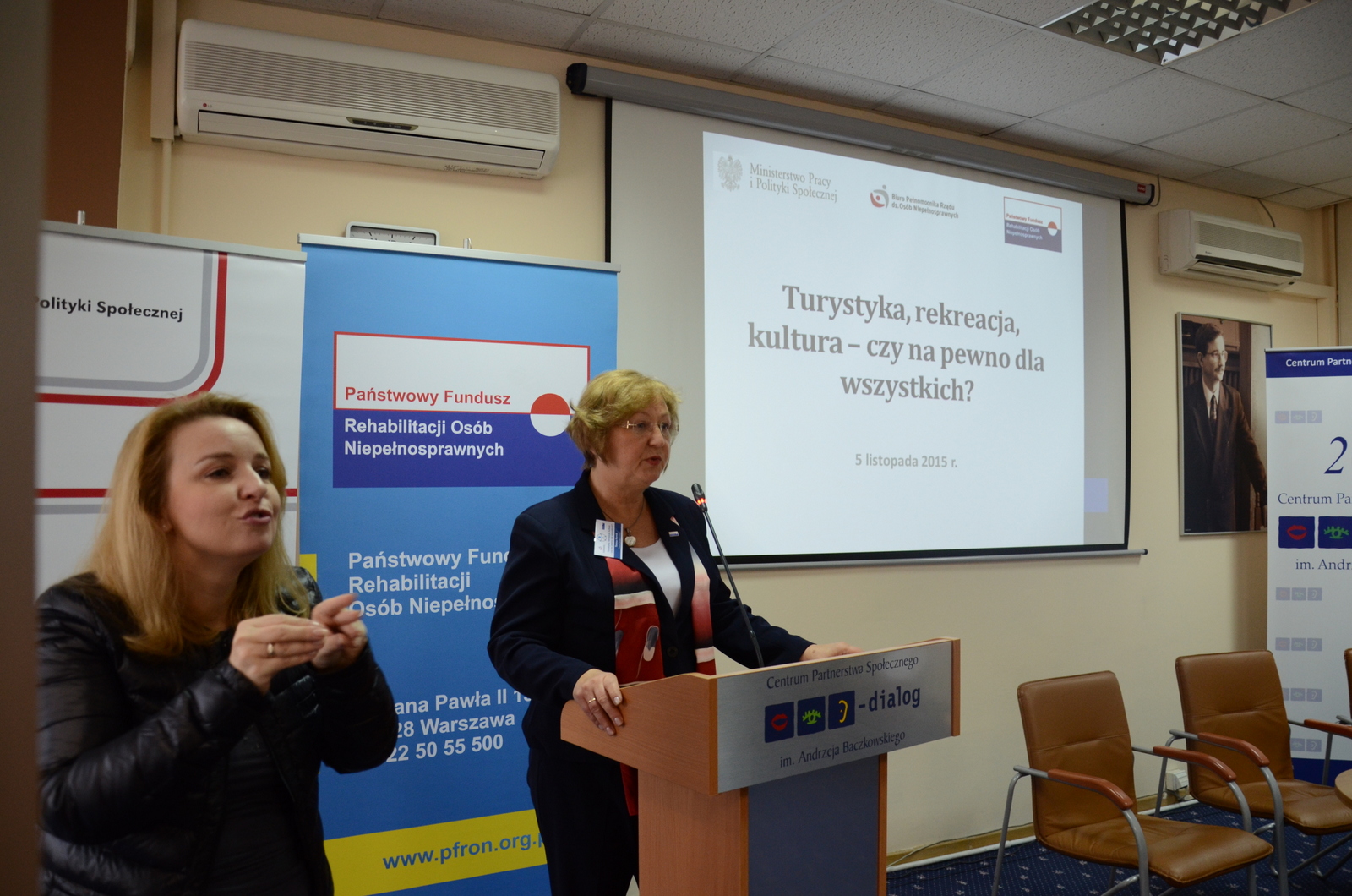 5 listopada 2015 r. w Centrum Partnerstwa Społecznego "Dialog" w Warszawie odbyła się konferencja „Turystyka, rekreacja, kultura - czy na pewno dla wszystkich?”. Konferencja była wspólnym dziełem Biura Pełnomocnika Rządu ds. Osób Niepełnosprawnych i Państwowego Funduszu Rehabilitacji Osób Niepełnosprawnych,