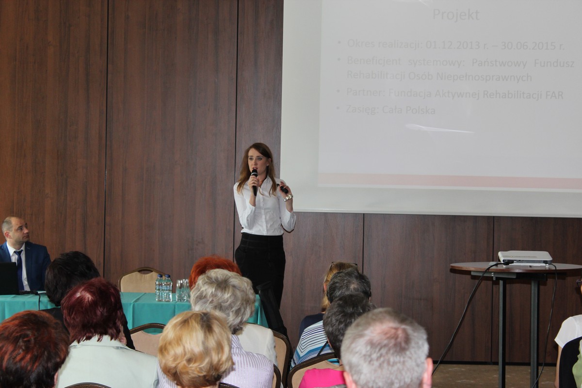 Konferencja upowszechniająca rezultaty projektu "Wsparcie osób z rzadko występującymi niepełnosprawnościami i niektórymi niepełnosprawnościami sprzężonymi w wieku 45+ na rynku pracy II" w dniu 20 maja 2015 r. w Kielcach