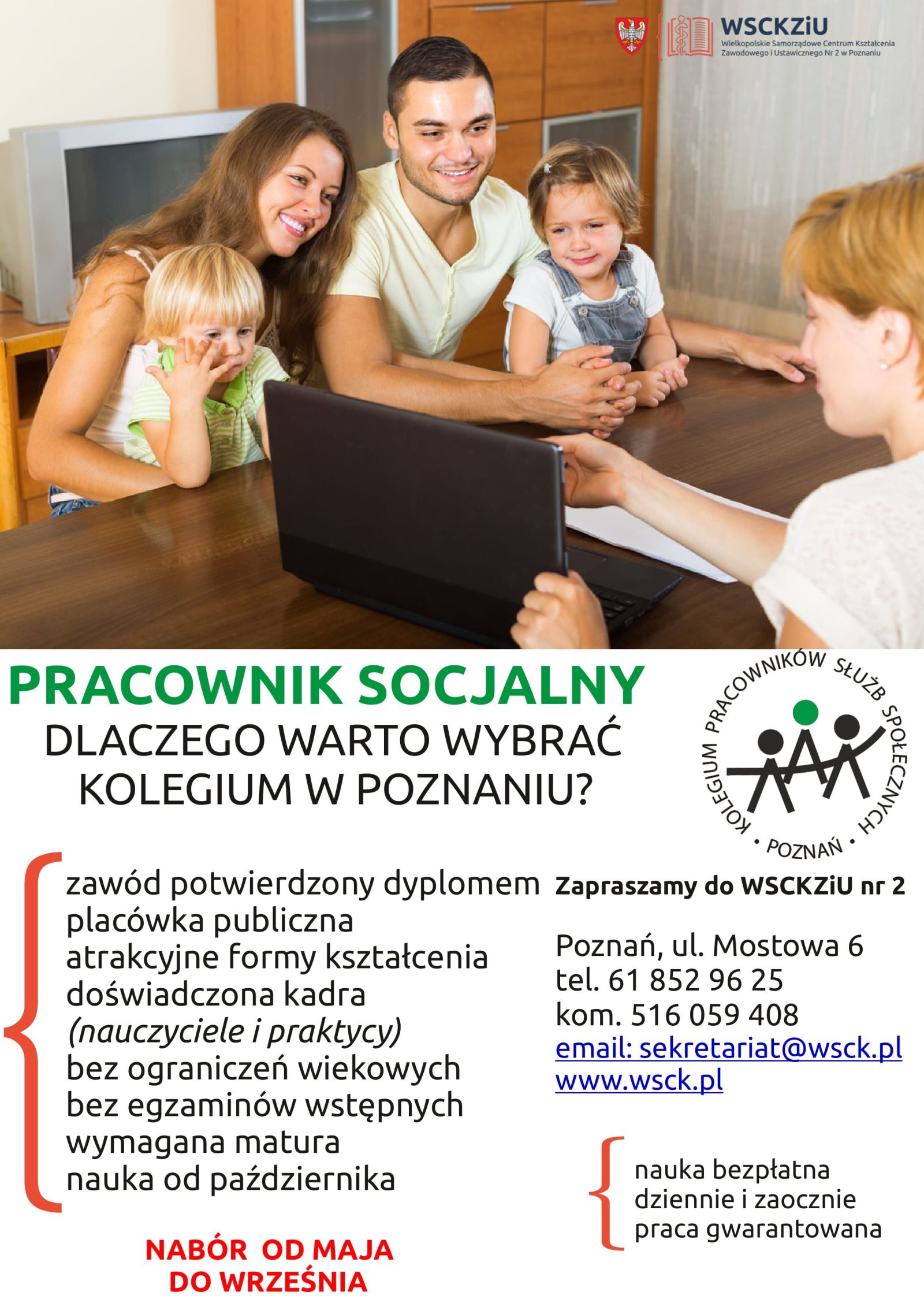 Osoby zainteresowane rekrutacją zachęcamy do kontaktu pod nr tel.: 516 059 408 oraz 61 852 96 25 lub na adres e-mail: sekretariat@wsck.pl .