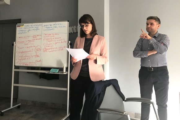 Wspólne działania na rzecz rozpowszechnienia umiejętności posługiwania się językiem migowym przez pracowników instytucji kultury były tematem poniedziałkowego spotkania w Małopolskim Instytucie Kultury. Marta Mordarska – dyrektor Małopolskiego Oddziału Państwowego Funduszu Rehabilitacji Osób Niepełnosprawnych wraz z Adamem Stromidło – Prezesem Małopolskiego Oddziału Polskiego Związku Głuchych przybliżyli uczestnikom spotkania możliwości uzyskania dofinansowania do kosztów szkolenia Polskiego Języka Migowego ze środków PFRON.