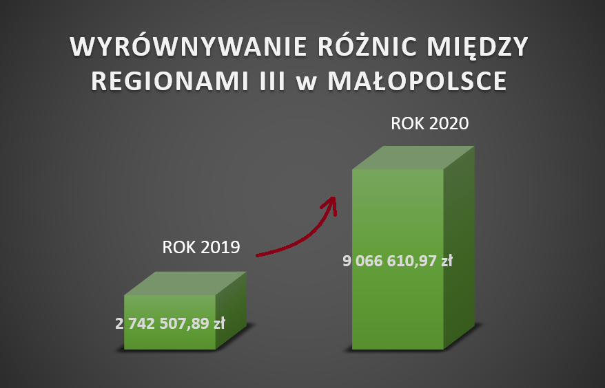 W 2020 roku na realizację „Programu wyrównywania różnic między regionami III" Oddział Małopolski PFRON przekazał dwudziestu Małopolskim Powiatom aż 9 066 610,97 zł - to ponad 3 razy więcej niż w roku 2019 (2 742 507,89 zł). W Małopolsce największą popularnością w ubiegłym roku cieszyła się likwidacji barier transportowych.