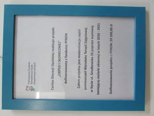 Kwota dofinansowania ze środków PFRON przyznana w ramach "Programu wyrównywania różnic między regionami III" stanowiła 80% planowanych kosztów realizacji projektu i wynosi 29.200,00 zł.