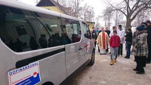 Odbiór samochodu miał uroczystą oprawę, poprzedzoną mszą świętą, a zakończony został poświęceniem auta w obecności uczestników Warsztatów, kadry, przedstawicieli lokalnych i powiatowych władz, PCPR oraz Oddziału Opolskiego PFRON.