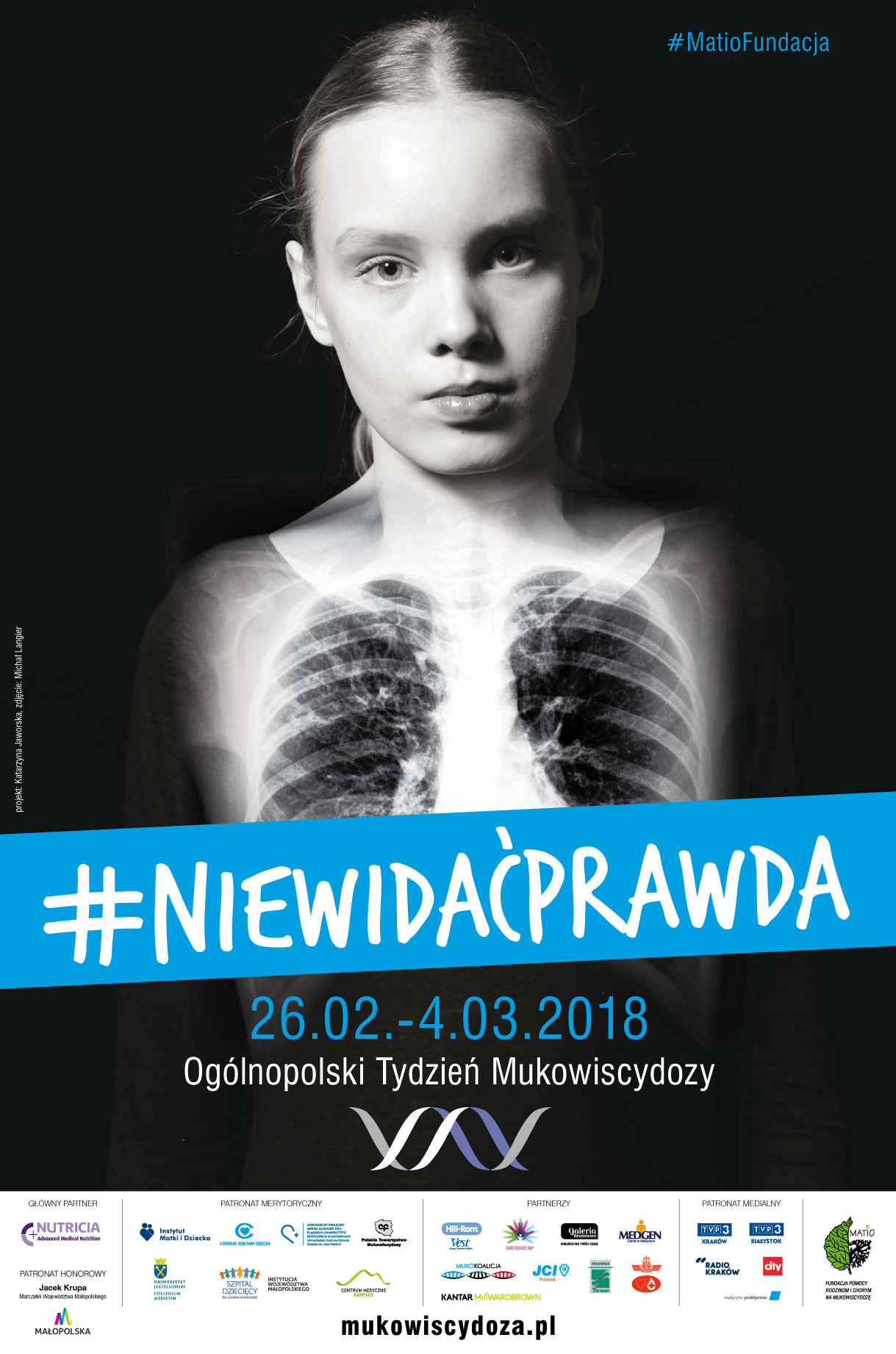 MATIO Fundacja Pomocy Rodzinom i Chorym na Mukowiscydozę po raz kolejny organizuje cykl spotkań edukacyjnych, mających na celu zwiększenie świadomości tej niewidocznej, nieuleczalnej choroby - najczęstszej z pośród chorób rzadkich. „NieWidaćPrawda” – to hasło siedemnastego już Ogólnopolskiego Tygodnia Mukowiscydozy. Wydarzenia związane z tegoroczną edycją odbędą się w dniach 26.02-04.03.2018 r. w całej Polsce.