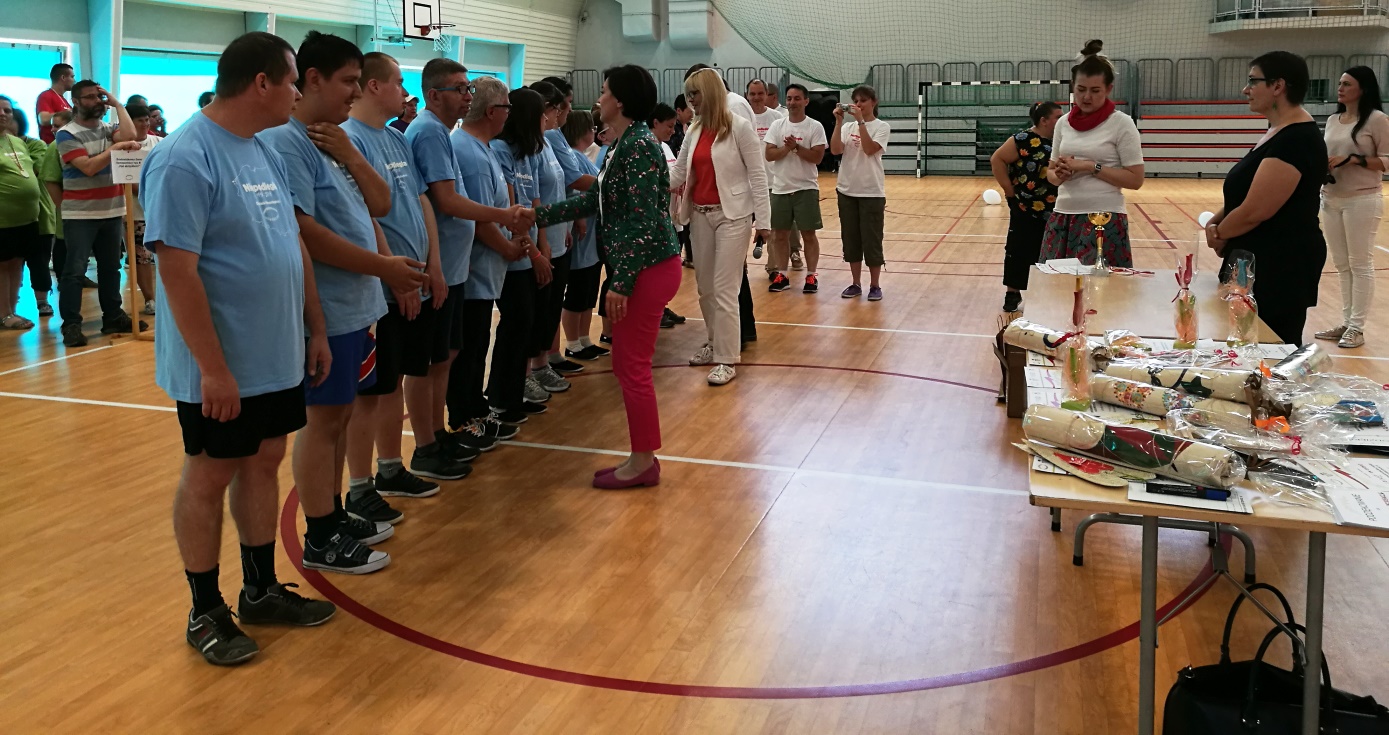 Zabawę rozpoczęła wspólna rozgrzewka przy muzyce serwowanej przez DJ Wikę. Następnie pełni zapału zawodnicy rozpoczęli zmagania. Wszyscy wykazali się dużym zaangażowaniem i duchem współzawodnictwa. Różnice wiekowe nie miały znaczenia dla uczestników środowiskowego domu samopomocy, warsztatu terapii zajęciowej, psychiatrycznego oddziału dziennego oraz uczniów zespołu szkół specjalnych.