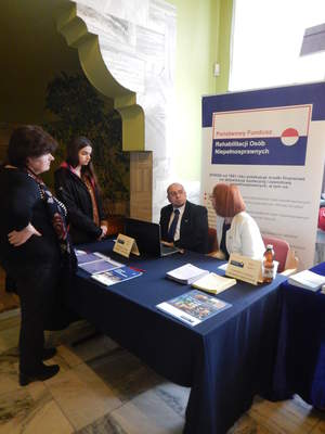 W trakcie seminarium dostępne było stoisko informacyjne Oddziału Małopolskiego PFRON. Specjaliści ds. wsparcia i współpracy z pracodawcami udzielali informacji na temat form wsparcia ze środków PFRON aktywizacji zawodowej osób niepełnosprawnych. Stoisko informacyjne PFRON dedykowane było zarówno przedsiębiorcom ipracodawcom już działających, jak iosobom, które dopiero rozważają wystartowanie z własną działalnością gospodarczą i zamierzają wiązać ją z ważną misją społeczną jaką jest współudział w realizacji aktywizacji zawodowej osób niepełnosprawnych.