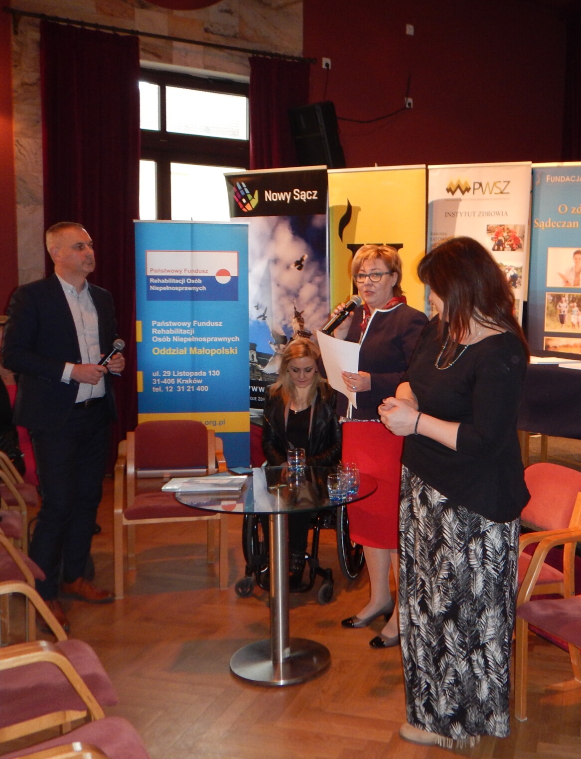 Pani Agata Zięba, Członek Zarządu Powiatu Limanowskiego opowiedziała o Powiatowej wypożyczalni sprzętu rehabilitacyjnego i ortopedycznego w Limanowej. Pani Iwona Kamieńska, dziennikarka, autorka książek „Akademia Orłów” i „Akademia Orłów II” oraz Pani Magdalena Kotlarz, w swojej części pn. „Integracja, a inkluzja czyli… świat nie tylko dla orłów” mówiąc o barierach z jakimi borykają się osoby niepełnosprawne poruszyły tematy dotyczące empatii.