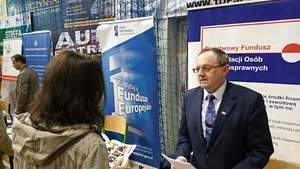 Podczas Targów Dyrektor Oddziału spotkał się również ze Starostą Koneckim Panem Bogdanem Soboniem i rozmawiał na temat wydatkowania przez Powiat Konecki środków na aktywizację zawodową osób niepełnosprawnych.