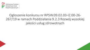Ogłoszenie konkursu w ramach Poddziałania 9.2.3 „Rozwój wysokiej jakości usług zdrowotnych”