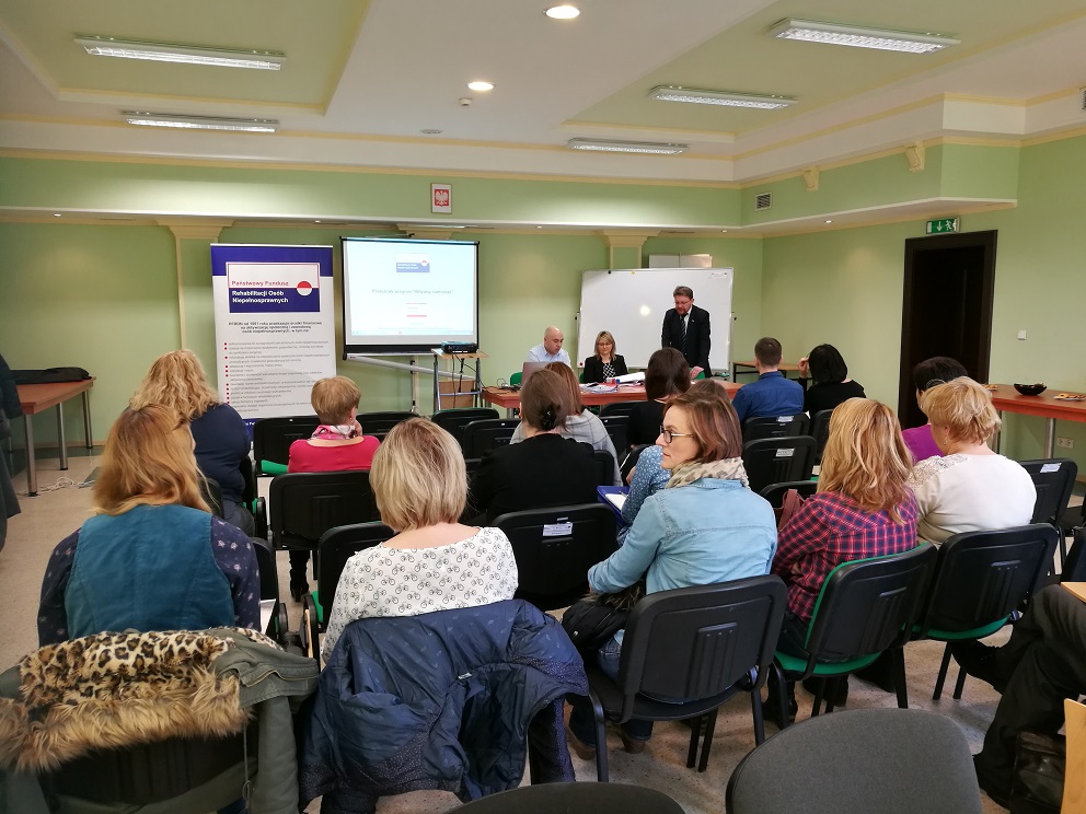 28 lutego 2017 r. w Oddziale Opolskim Państwowego Funduszu Rehabilitacji Osób Niepełnosprawnych odbyło się spotkanie dla realizatorów pilotażowego programu „Aktywny samorząd”. W spotkaniu wzięli udział przedstawiciele samorządów powiatowych oraz PCPR zterenu woj. Opolskiego. Tematyka spotkania dotyczyła m.in. zmian wprowadzonych wzasadach realizacji programu w 2017 roku oraz środków przekazywanych samorządom wramach algorytmu. Na spotkaniu przedstawiono również Raport dotyczący badań, przeprowadzonych w 2016 r. na zlecenie PFRON, z realizacji przez samorządy powiatowe zadań ustawowych na rzecz osób niepełnosprawnych, w tym przykłady dobrych praktyk wsamorządach oraz standardów oceny wniosków w ramach zadań realizowanych przez samorządy powiatowe ze środków Państwowego Funduszy Rehabilitacji Osób Niepełnosprawnych.