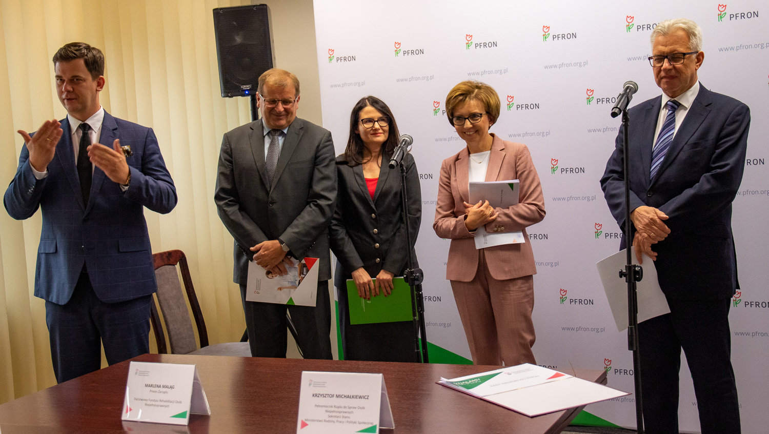 Podczas wtorkowego briefingu w siedzibie PFRON zostały podsumowane działania Rady Nadzorczej, której prezesem jest pełnomocnik Rządu ds. Osób Niepełnosprawnych Krzysztof Michałkiewicz. Wspólnie z Prezes Zarządu PFRON Marleną Maląg przedstawili efekty dobrej współpracy, dzięki której udało się wprowadzić istotne rozwiązania dla osób niepełnosprawnych.