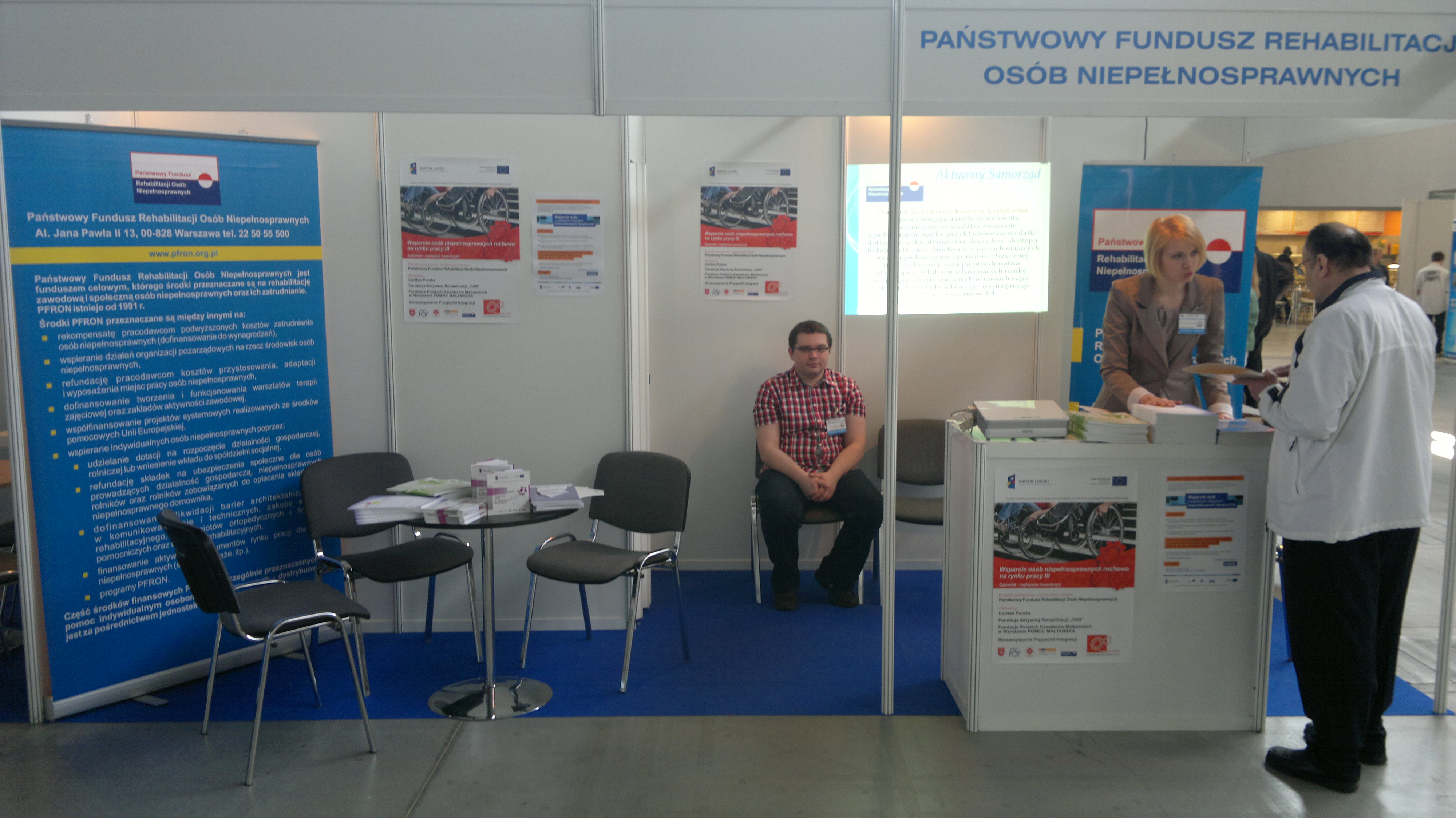Jednym z wystawców uczestniczących w targach był Oddział Świętokrzyski PFRON. Pracownicy Oddziału udzielali informacji na temat pilotażowego programu „ Aktywny samorząd ” oraz innych działań podejmowanych przez Fundusz w celu wsparcia procesu rehabilitacji zawodowej i społecznej osób niepełnosprawnych o różnych schorzeniach oraz pracodawców zatrudniających osoby niepełnosprawne, czy instytucjach do których mogą zgłaszać się poszczególne osoby niepełnosprawne poszukujące pomocy. Wszyscy zainteresowani otrzymywali aktualne materiały w postaci ulotek, informatorów, wydawnictw oraz gadżetów. Stoisku Funduszu tradycyjnie towarzyszyła wystawa rękodzieła artystycznego przygotowana przez świętokrzyskie WTZ-ty, ŚDS-y i DPS-y, na której można było podziwiać niezwykłe prace plastyczne, poszukać inspiracji do tworzenia oraz zaczerpnąć fachowych porad od terapeutów zajęciowych.