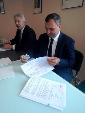 Pierwsza umowa zawarta została z Powiatem Gorlickim, który na likwidację barier architektonicznych i transportowych pozyskał najwięcej środków z PFRON w Województwie Małopolskim, aż 570 tys. zł. W ramach 7 projektów powiat zakupi samochody do przewozu osób niepełnosprawnych m.in. dla Domu Pomocy Społecznej w Gorlicach i Klimkówce oraz zlikwiduje bariery architektoniczne w Miejskim Zespole Szkół nr 3 w Gorlicach. 135 tys. zł przeznaczone zostanie na budowę windy dla potrzeb m.in. Środowiskowego Domu Samopomocy w Bieczu. Marta Mordarska, dyrektor Oddziału Małopolskiego PFRON spotkała się z Karolem Górskim, Starostą Gorlickim 23 sierpnia 2017 r. w Starostwie Powiatowym w Gorlicach.
