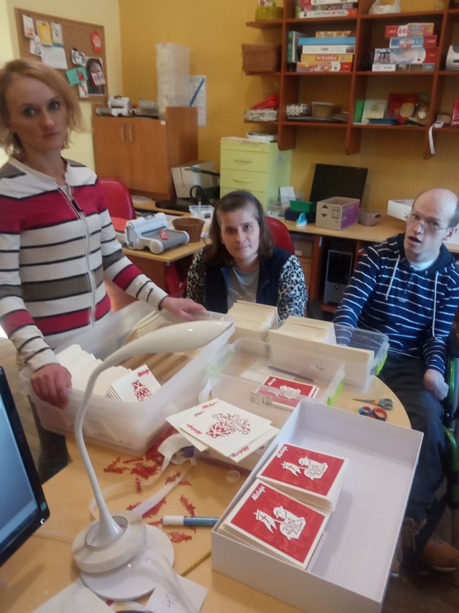 Zamówienie zostało zlecone po tym jak Pani Prezydentowa 10 lutego 2021r. wirtualnie odwiedziła Warsztaty. Podczas trwającego spotkania zapoznała się z ofertą wyrobów wielkanocnych oraz pocztówek, które przygotowywane są przez podopiecznych na kiermasze w ramach zbliżających się Świąt Wielkanocnych.