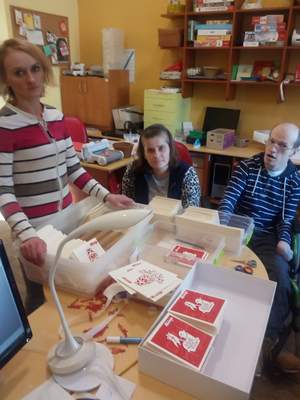 Zamówienie z racji rangi osoby zamawiającej udało się wykonać w 120%. Podopieczni Warsztatów mają ogromną nadzieję, że pocztówki wykonane przez nich samych spodobają się Pierwszej Damie.