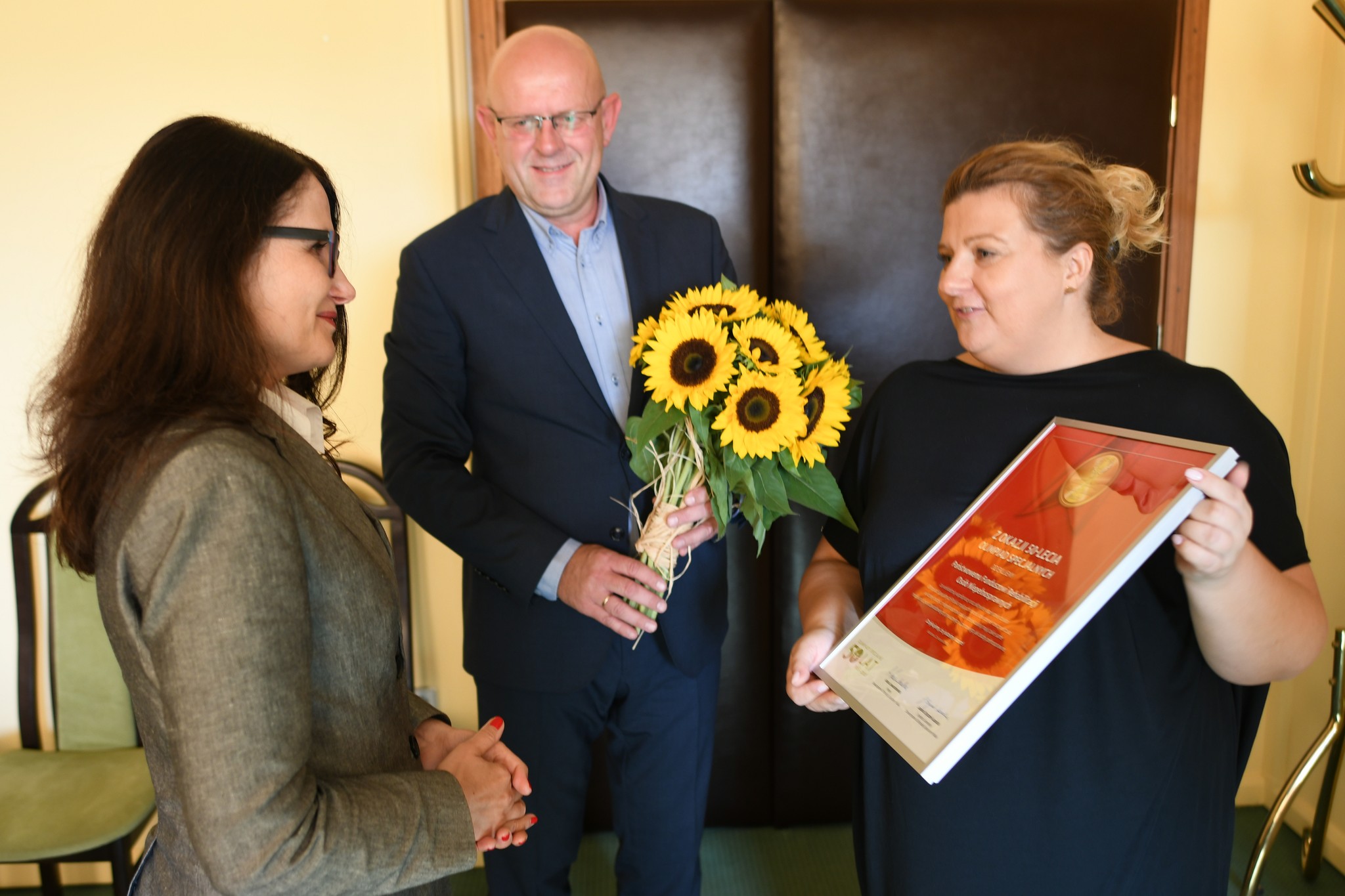 Pani Dorota Habich p.o. Prezes Zarządu PFRON odebrała z rąk Wiceprezesa ds. Organizacji Grzegorza Kurkowskiego oraz Joanny Styczeń – Lasockiej Dyrektora Generalnego Stowarzyszenia Olimpiad Specjalnych Polska podziękowania dla Państwowego Funduszu Rehabilitacji Osób Niepełnosprawnych za wieloletnią współpracę oraz aktywne wspieranie działań Olimpiad Specjalnych Polska mających na celu stworzenie rzeczywistości, w której osoby z niepełnosprawnością intelektualną maja takie same możliwości życia zawodowego, prywatnego i sportowego jak osoby pełnosprawne.