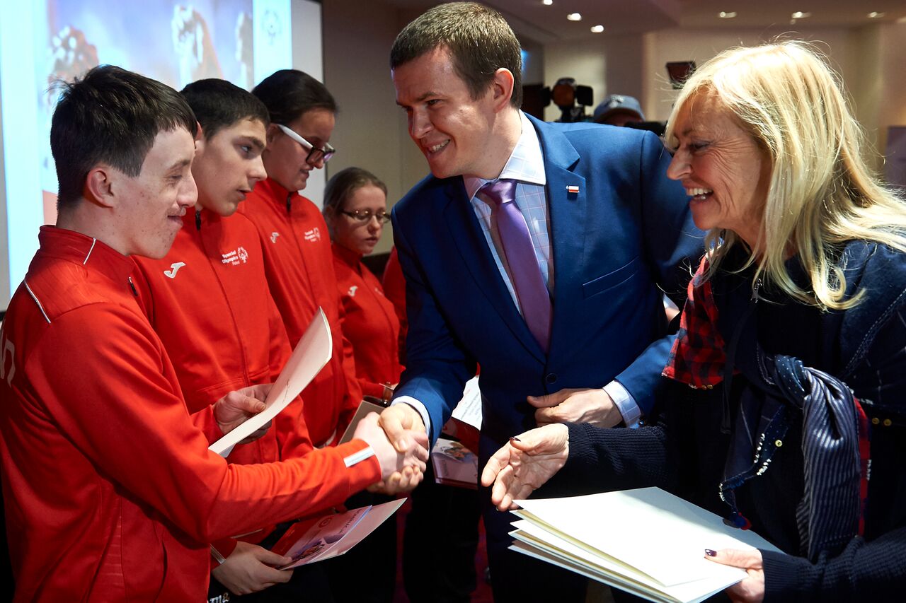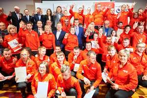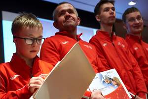 Polska Reprezentacja Olimpiad Specjalnych na Światowe Zimowe Igrzyska Olimpiad Specjalnych w Austrii odebrała w niedzielę (12 marca br.) z rąk Ministra Sportu i Turystyki Witolda Bańki, Prezesa Państwowego Funduszu Rehabilitacji Osób Niepełnosprawnych Roberta Kwiatkowskiego, Prezesa PKOL Andrzeja Kraśnickiego nominacje olimpijskie. W składzie 62. osobowej reprezentacji znalazło się 46 zawodników , którzy będą startować w pięciu dyscyplinach zimowych: narciarstwie alpejskim, biegowym, łyżwiarstwie szybkim, biegu na rakietach śnieżnych i hokeju halowym. Skład reprezentacji uzupełnia 1 3 trenerów i trzech członków kierownictwa , którzy będą wspierać naszych zawodników w trakcie zawodów.