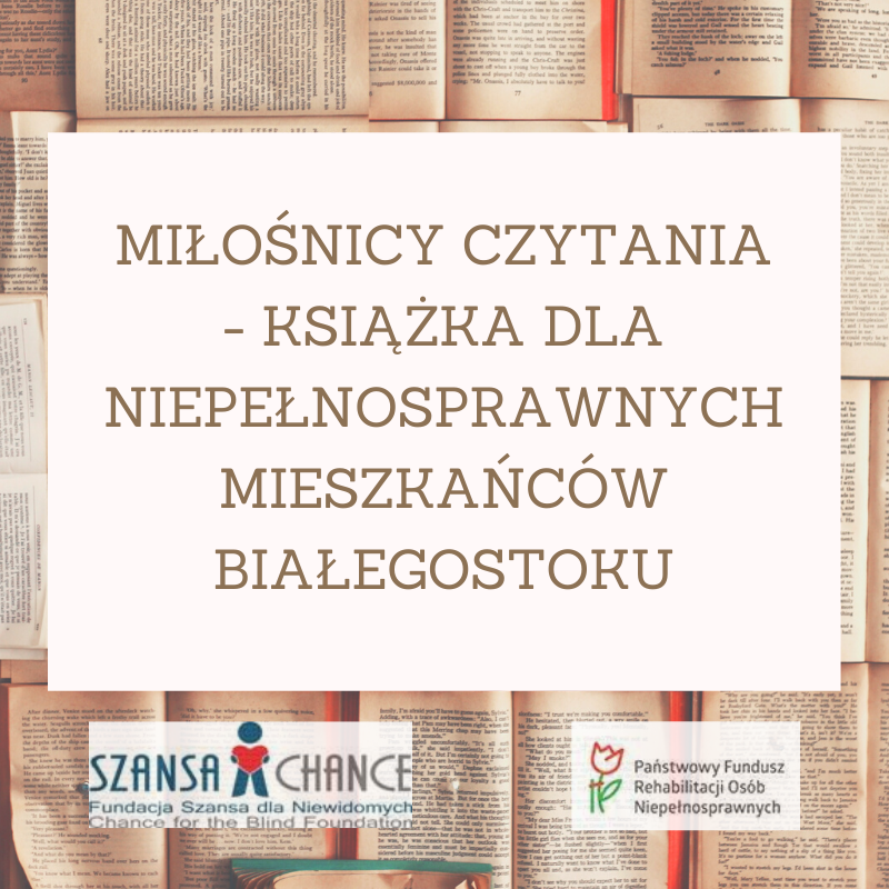 W ramach realizowanego projektu w tyflopunkcie będą odbywać się spotkania promujące czytelnictwo, na których rozdane zostaną książki w równych formatach: czarnodruku, brajlu, druku transparentnym oraz audiobooki. Na zakończenie projektu kilkoro z uczestników wypowie się na temat przeczytanej przez siebie publikacji w krótkim materiale wideo.
