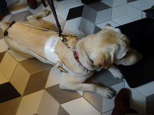 Do bezpiecznego poruszania się z psem niezbędna jest specjalistyczna uprząż, która przekazywana jest niewidomemu nieodpłatnie wraz z psem. Uprząż jest dopasowana do wielkości psa i wzrostu niewidomego.