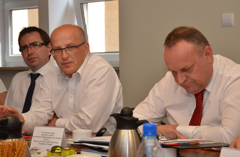 Druga część spotkania całości była poświęcona dyskusji na temat rehabilitacji społeczno-zawodowej osób z niepełnosprawnością w Polsce oraz prawnych iinstytucjonalnych rozwiązań w tym zakresie. Szczególny nacisk położono na funkcjonowanie Państwowego Funduszu Rehabilitacji Osób Niepełnosprawnych. Dyskusji jaka wywiązała się w trakcie spotkania przewodniczył pan minister Jarosław Duda, Sekretarz Stanu w MPiPS, Pełnomocnik Rządu ds. Osób Niepełnosprawnych. Szczegółowych informacji na temat Funduszu udzielił delegatom pan Jacek Brzeziński, Zastępca Prezesa PFRON.