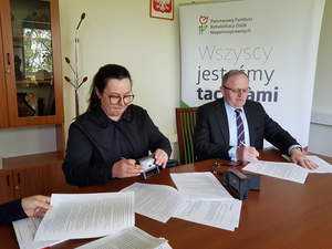 W siedzibie Oddziału Świętokrzyskiego PFRON Katarzyna Frańczak prezes Fundacji Ziarno Nadziei i dyrektor Oddziału Andrzej Michalski podpisali dwie umowy dotyczące realizacji dwóch projektów dotyczących rehabilitacji zawodowej osób z niepełnosprawnościami – wejście na rynek pracy. Pierwszy projekt „Kierunek Praca” drugi „Życiowa Szansa”. Projekty są skierowane do osób z niepełnosprawnościami z orzeczeniem o niepełnosprawności umiarkowanej, lekkiej i znacznej. – Osoby z niepełnosprawnością wezmą udział w zajęciach aktywizacyjnych z doradcą zawodowym, w warsztatach psychologicznych, stażach oraz planowane jest ich wsparcie w znalezieniu pracodawców.