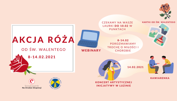 Pomorska Koalicja na Rzecz Zdrowia Psychicznego od 10 lat organizuje Akcję „Róża od Świętego Walentego”. Zainicjowana przez Stowarzyszenie Świętego Walentego akcja cyklicznie przeprowadzana jest na terenie całego Trójmiasta. W związku z ograniczonymi możliwościami kontaktu, a często realizacją wsparcia online Akcja Róża od św. Walentego w 2021 zmienia formułę. W miejsce bezpośrednich spotkań zaplanowano warsztaty, webinary, a 14 lutego zorganizowany będzie na koncert zespołu Blue May, wspierający Artystyczną Inicjatywę dla młodzieży doświadczającej kryzysów psychicznych w Luzinie.