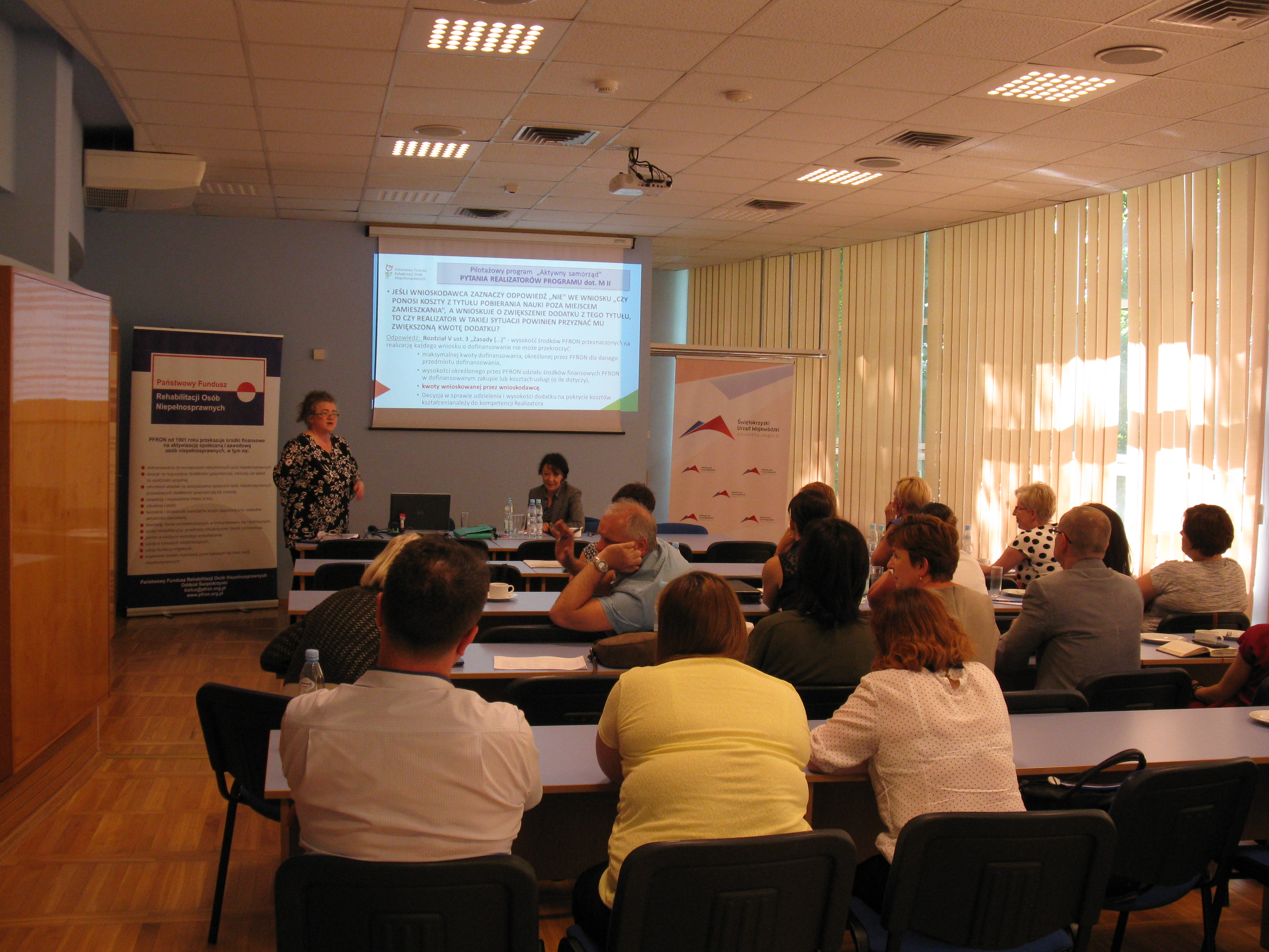 Spotkanie zostało zorganizowane przez Oddział Świętokrzyski Państwowego Funduszu Rehabilitacji Osób Niepełnosprawnych oraz Świętokrzyski Urząd Wojewódzki w Kielcach, a poprowadziła je pani Małgorzata Poręba ekspert z Departamentu ds. Programów z Biura Funduszu w Warszawie.