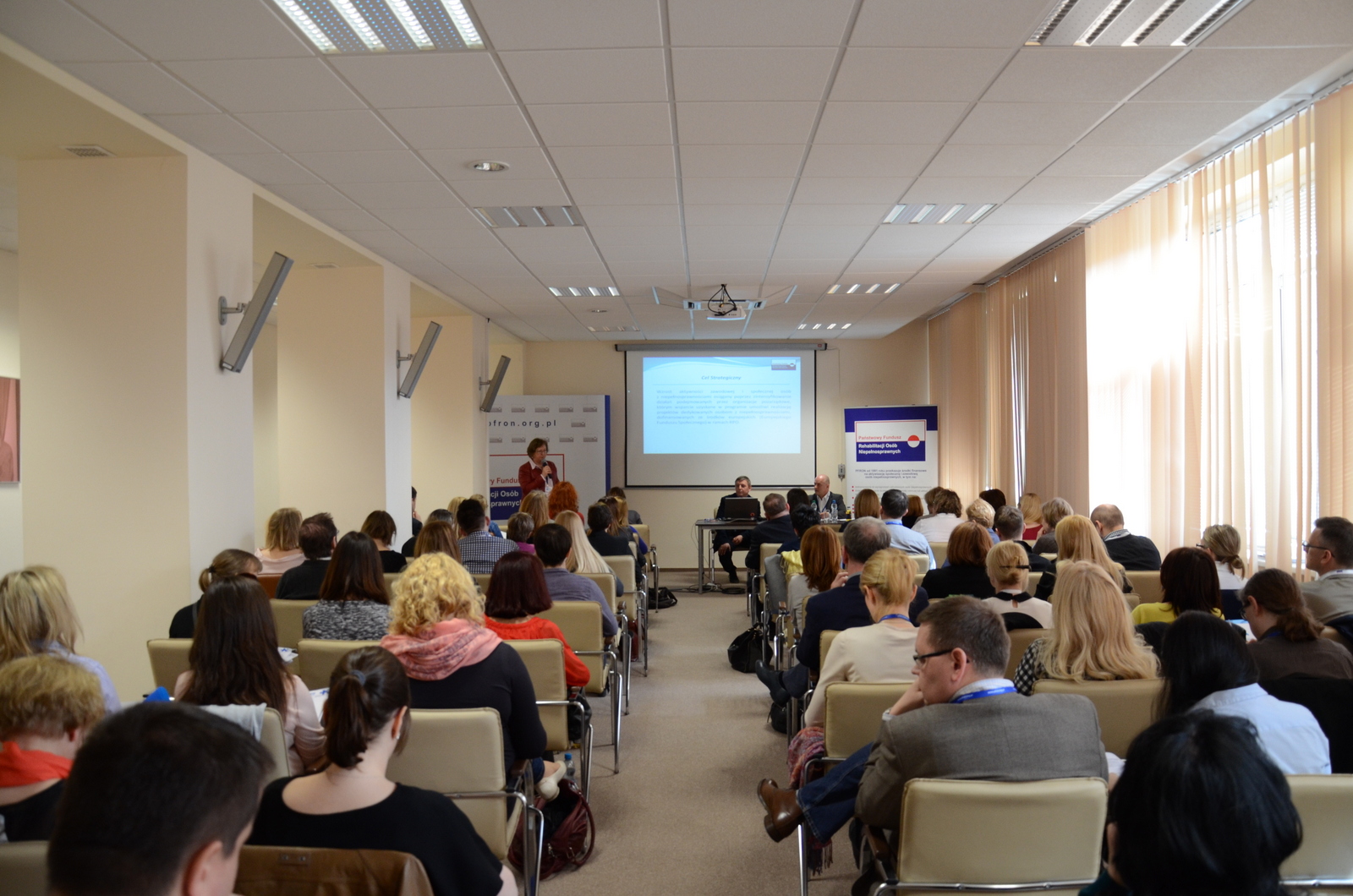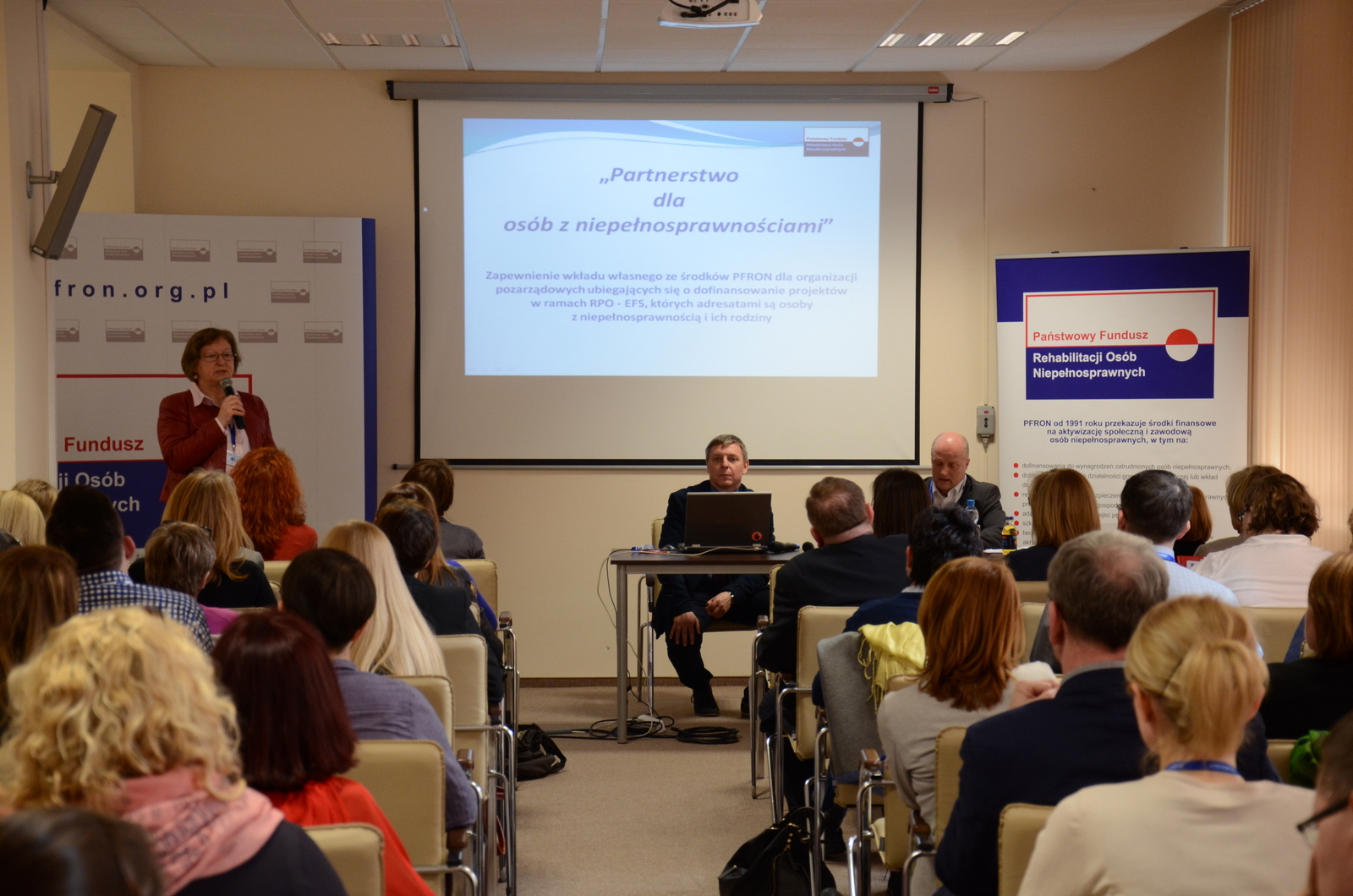 W dniach 7-8 kwietnia 2016 r. w Centrum Partnerstwa Społecznego "Dialog" im. A. Bączkowskiego w Warszawie odbyło się spotkanie informacyjno-konsultacyjne dot. wdrażania programu „Partnerstwo dla osób z niepełnosprawnościami - Program współpracy z Zarządem Województwa w celu współfinansowania projektów organizacji pozarządowych wyłonionych do dofinansowania w drodze konkursów organizowanych przez Zarządy Województw w ramach Regionalnych Programów Operacyjnych”. W spotkaniu uczestniczyli przedstawiciele Urzędów Marszałkowskich, Biura i Oddziałów PFRON a także Biura Pełnomocnika Rządu ds. Osób Niepełnosprawnych. Ważnym wsparciem merytorycznym było uczestnictwo w całości spotkania przedstawicieli Ministerstwa Rozwoju, które w swoisty sposób patronuje nowemu programowi. Program Partnerstwo…” jest nowatorskim pomysłem PFRON ułatwiającym organizacjom pozarządowym pozyskanie dofinansowania na projekty służące osobom z niepełnosprawnościami w ramach Regionalnych Programów Operacyjnych. Na czym polega nowatorstwo programu? – na tym, że PFRON dawałby organizacjom pozarządowym spełniającym kryteria wskazane w programie środki finansowe na wymagany wkład własny w konkursach organizowanych w ramach RPO. Dysponentem całości środków finansowych (dofinansowania z RPO i wkładu własnego ze środków PFRON) byłby Zarząd Województwa. Takie rozwiązanie pozwoli na korzystanie ze środków unijnych organizacjom nie mającym dostatecznych środków finansowych na pokrycie wkładu własnego, a jednocześnie na sprawną obsługę środków finansowych pochodzących z dwóch źródeł.