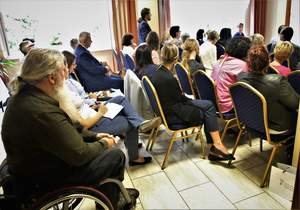 Po wystąpieniu Ministra, który zachęcał do otwartej dyskusji, głos oddano gościom, którzy chętnie zadawali pytania. Dotyczyły one m.in. wsparcia osób głuchych i głuchoniemych w placówkach medycznych – podkreślano bardzo ograniczoną i niewystarczającą dostępność do tłumacza migowego. Pytano o szkolenia z zakresu języka łatwego i kontaktu z osobami z niepełnosprawnością, o pomysł rządu na edukację osób niepełnosprawnych po ukończeniu szkoły specjalnej. Zwrócono uwagę na konieczność weryfikacji zasad przyjmowania osób do ŚDS-ów i WTZ-ów oraz podziału środków pomiędzy ŚDS-y, WTZ-y i ZAZ-y, uwzględniając kompetencje społeczne i sprawność uczestników. Pytano o reformę systemu orzekania, zgłaszając konieczność ujednolicenia zasad orzekania i nazewnictwa oraz stosowania, przy orzekaniu, diagnozy funkcjonalnej, o politykę wytchnieniową i brak miejsc w potencjalnych instytucjach, które mogłyby świadczyć tego typu usługi, o wpływ podjęcia zatrudnienia przez osobę niepełnosprawną na wysokość otrzymywanej renty socjalnej, o możliwości programu Dostępność+, m.in. w zakresie zabezpieczenia mieszkaniowego w środowisku lokalnym na wypadek śmierci opiekunów faktycznych oraz czy nowa ustawa o zatrudnieniu wspomaganym bierze pod uwagę wypracowany przez PFRON model „Trenera pracy” jako sposobu zwiększenia zatrudnienia osób niepełnosprawnych. Przedstawiciel powiatu zapytał o los pracowników socjalnych, którzy byli, i nieraz nadal są, zatrudnieni w wielu placówkach leczniczych, a zostali „zapomnieni” i ich potencjał i wykształcenie nie są w ogóle wykorzystywane, a mogliby stanowić silną podporę w systemie wsparcia osób niepełnosprawnych i ich rodzin. Poruszył także temat postępu prac nad wyrokiem Trybunału Konstytucyjnego z 2014r. w zakresie dyskryminacji osób niepełnosprawnych ze względu na wiek, co prowadzi do zróżnicowanych świadczeń, pobieranych przez opiekunów dzieci niepełnosprawnych w stosunku do dorosłych niepełnosprawnych.