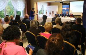 Spotkanie, które poprzedził briefing prasowy, otworzyła Dorota Hass - Dyrektor Wydziału Polityki Społecznej Kujawsko-Pomorskiego Urzędu Wojewódzkiego w Bydgoszczy, która pełniła funkcję moderatora.