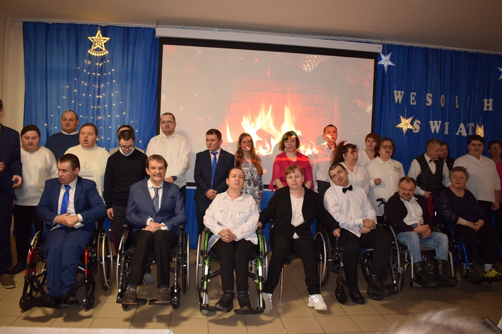 Uroczystość rozpoczęła się od występu Adama Bębna- zagrał on piosenkę, która co roku była motywem przewodnim spotkań w WTZ „ Jest taki dzień”. Następnie podopieczni WTZ zaśpiewali piosenkę „Wesołych świąt”. Po części artystycznej kierownik Wioletta Kozłowska przywitała wszystkich, obecnych na uroczystości i złożyła życzenia świąteczno-noworoczne, do których dołączyła się i kierownik Dziennego Domu Senior + Ewelina Biesiada. Na ręce zaproszonych gości zostały przekazane upominki świąteczne wykonane w DDPOS w ramach prowadzonej terapii.