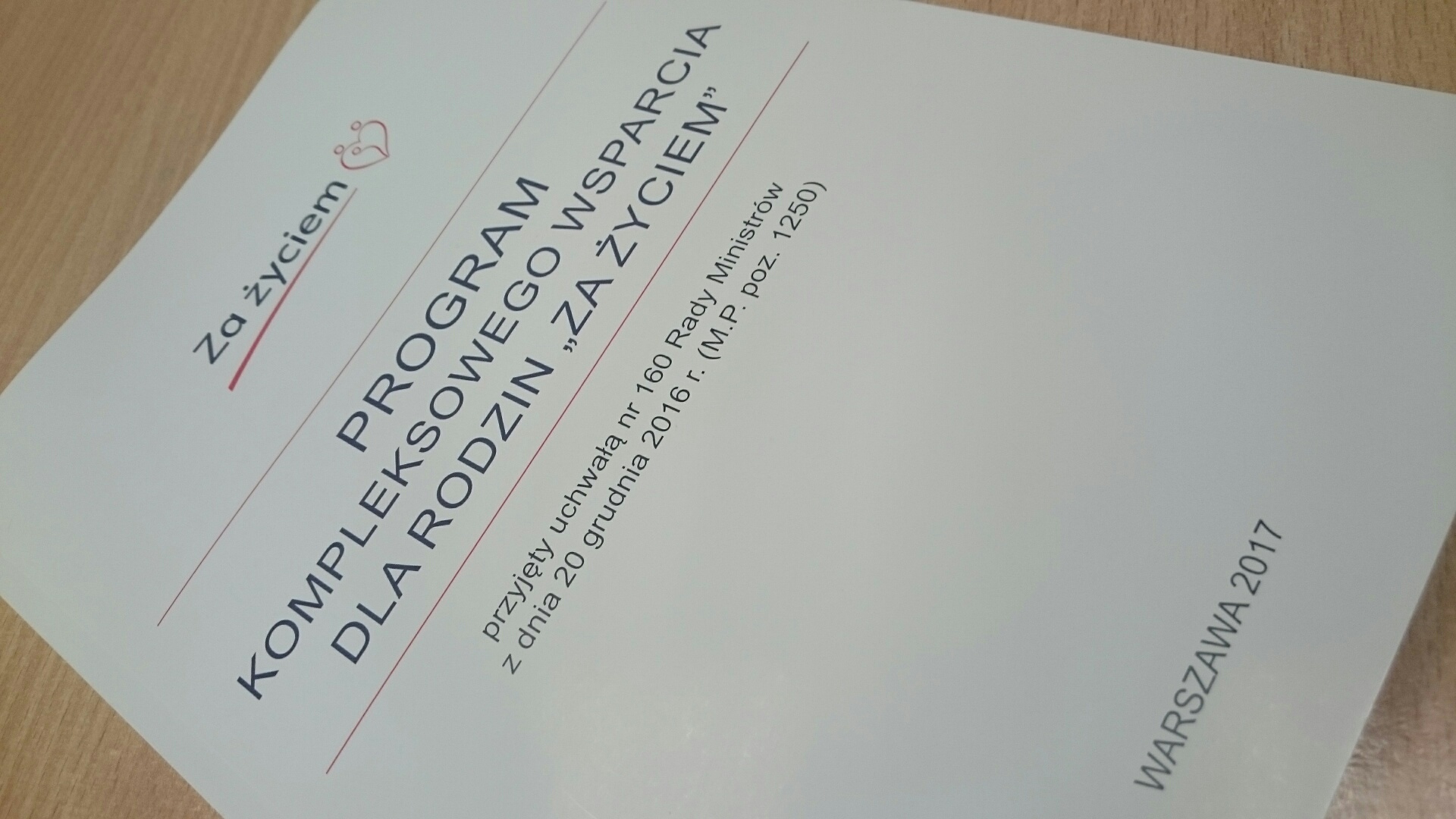 Program "Za życiem" ruszył w styczniu tego roku. Jego celem jest wsparcie osób niepełnosprawnych i ich rodzin, począwszy od zapewnienia dostępu do wszechstronnej opieki nad kobietą w okresie ciąży, w tym powikłanej, porodu i połogu oraz wczesnego wspomagania rozwoju dziecka.