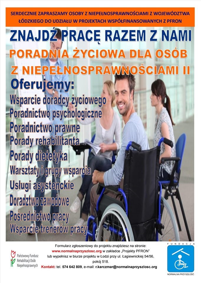 Zapraszamy osoby z niepełnosprawnościami z Łodzi do korzystania z usług oferowanych przez Fundację „Normalna Przyszłość”.