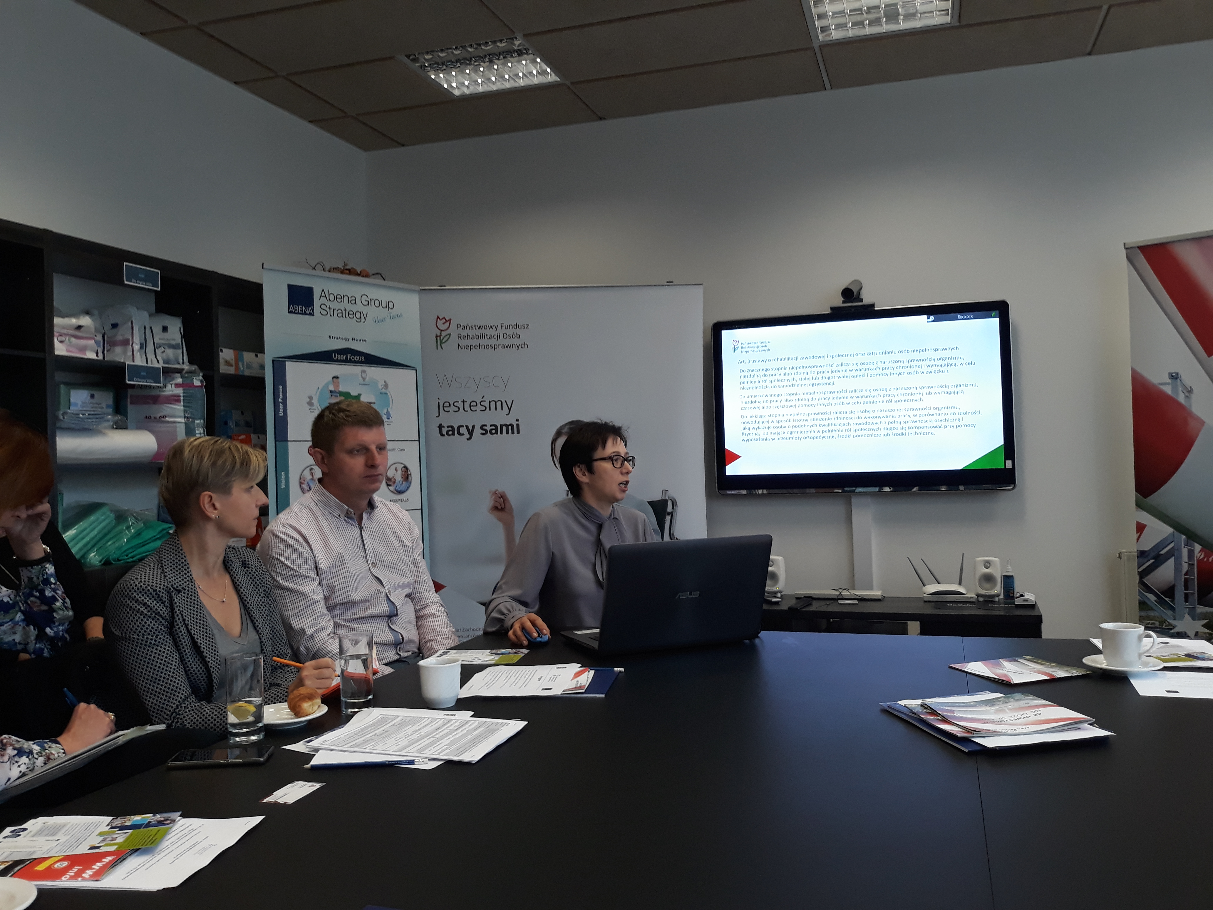 Szkolenie odbyło się w 14 września w sali konferencyjnej w siedzibie firmy Abena. Uczestnicy zdobyli wiedzę z zakresu zatrudniania osób niepełnosprawnych, dofinansowań do wynagrodzeń, a także mogli usłyszeć o nowych programach Funduszu. Ponadto wiedzą i doświadczeniem podzielili się reprezentanci Powiatowego Urzędu Pracy w Goleniowie oraz kierownik Zakładu Aktywności Zawodowej w Kołobrzegu Agnieszka Maciejewska, która mówiła o korzyściach płynących z zakupu produktów i usług ZAZ. Spotkanie zakończyło się prezentacją dobrych praktyk w zakresie zatrudniania osób z niepełnosprawnościami przez Agatę Wilińską-Onyśko, HR business partner w firmie PDC Logistics Sp. z o.o. Ta szwedzka firma działająca na terenie Goleniowskiego Parku Przemysłowego zatrudnia dwie osoby autystyczne. Prelegentka opowiadała o działaniach podjętych przez kierownictwo firmy w celu przystosowania stanowisk pracy, zapewnienia wsparcia trenerów wewnętrznych oraz uwrażliwienia pozostałych pracowników na potrzeby i obawy nowych członków zespołu oraz o pasji, z którą wykonują codzienne obowiązki zawodowe osoby dotknięte autyzmem.