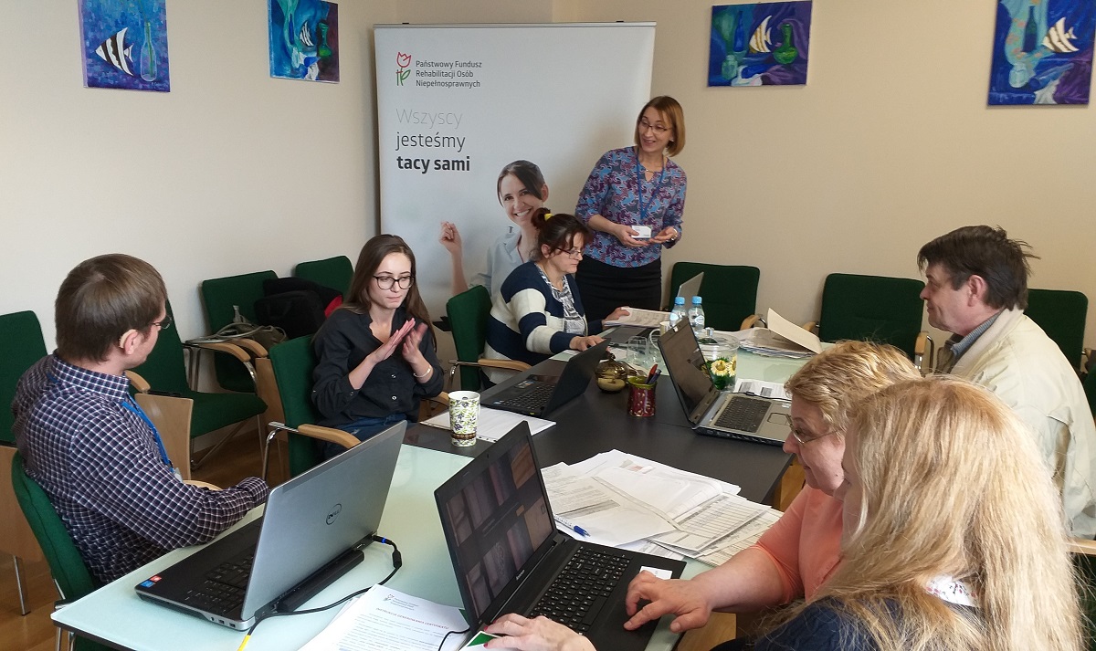 Jednym z uczestników szkolenia - warsztatów z elektronicznej obsługi wniosków SODIR, które odbyły się dnia 12 marca 2019 r. w Małopolskim Oddziale PFRON była osoba z dysfunkcją narządu słuchu. Uzyskała nie tylko wsparcie merytoryczno-techniczne w zakresie wypełniania wniosków, ale również wsparcie pracownika posługującego się językiem migowym. Z uwagi na duże zainteresowanie warsztaty zorganizowano w dwóch grupach. Grupy były kameralne, dzięki czemu uczestnicy uzyskali wsparcie pracownika Oddziału na każdym etapie wprowadzania dokumentów.
